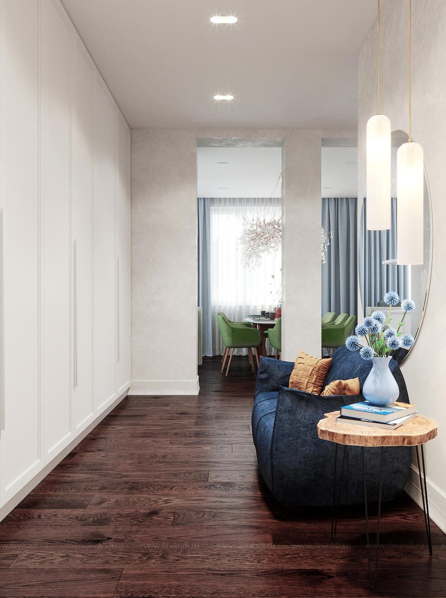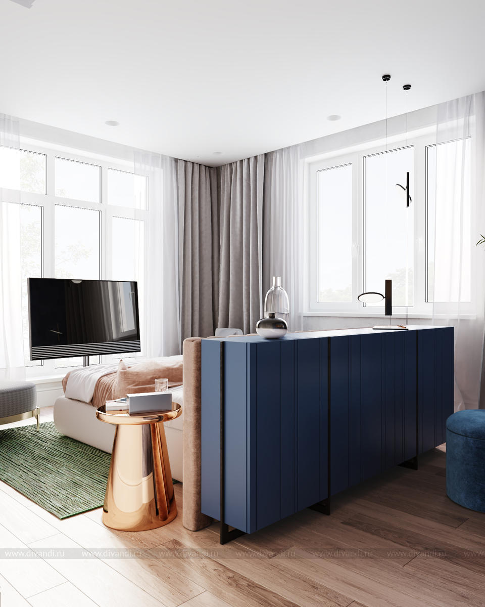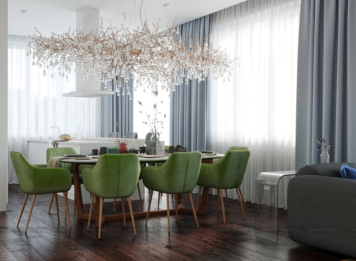 Название-идея проекта появилась из истории, которую мы придумали, пообщавшись с заказчиком. Хозяин дома любит природу, охоту, рыбалку и утренние прогулки по лесу. Ранним утром мы выходим на прогулку по еще полуспящему лесу. Туман. Восходящее солнце. Небо еще не полностью озарилось светом. Мох. Черника. И вот мы, прогуливаясь по этому утреннему раю, собираем чернику в лукошко. Нагулявшись вдоволь, возвращаемся в уютный дом, где бабушка или мама готовит из наших ягод вкуснейшие пироги. Мы кушаем их за завтраком с горячим чаем. День начался!