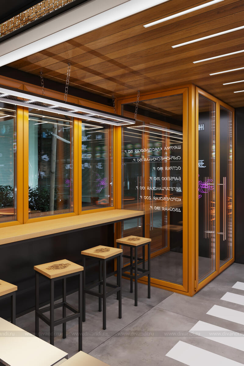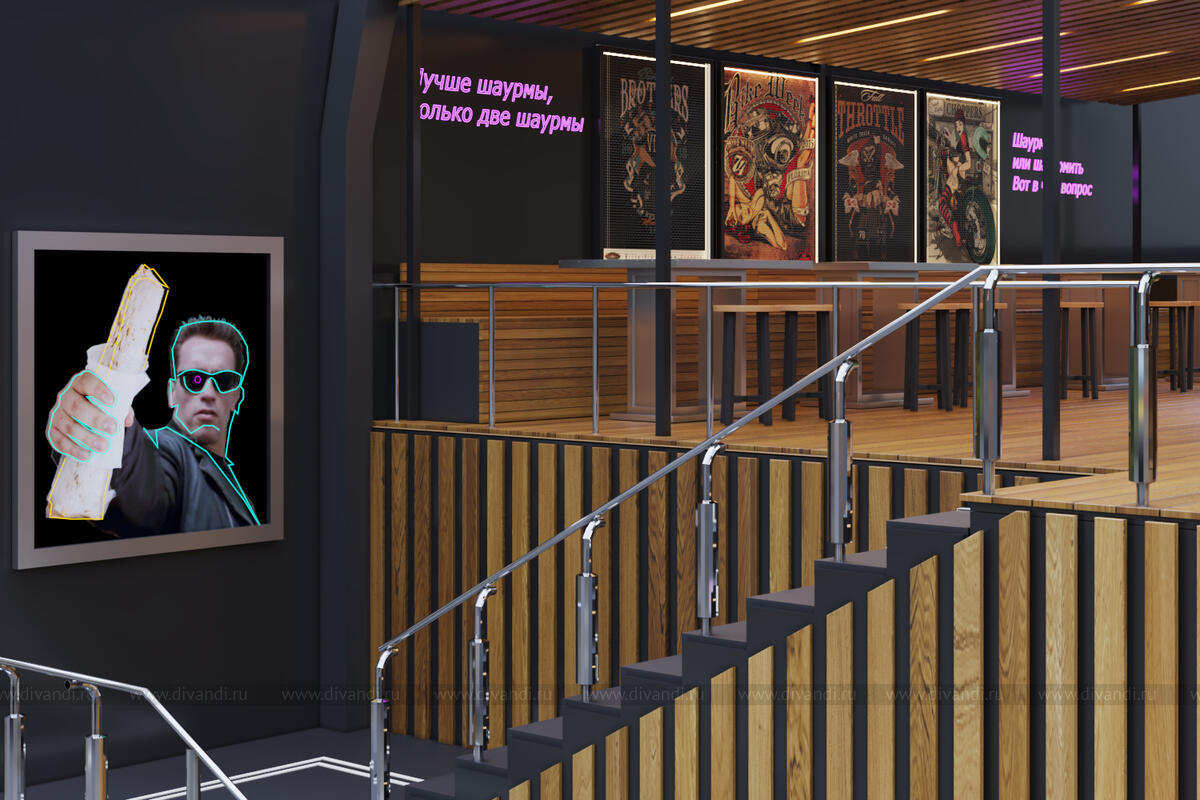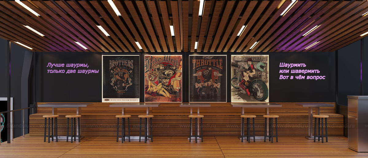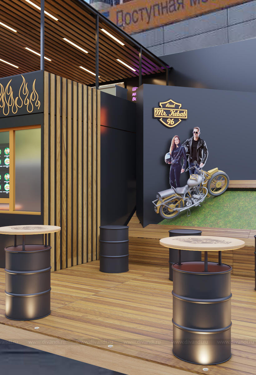 Интерьер павильона выглядит брутально и агрессивно – под стать характеру мотоциклов Harley-Davidson.
