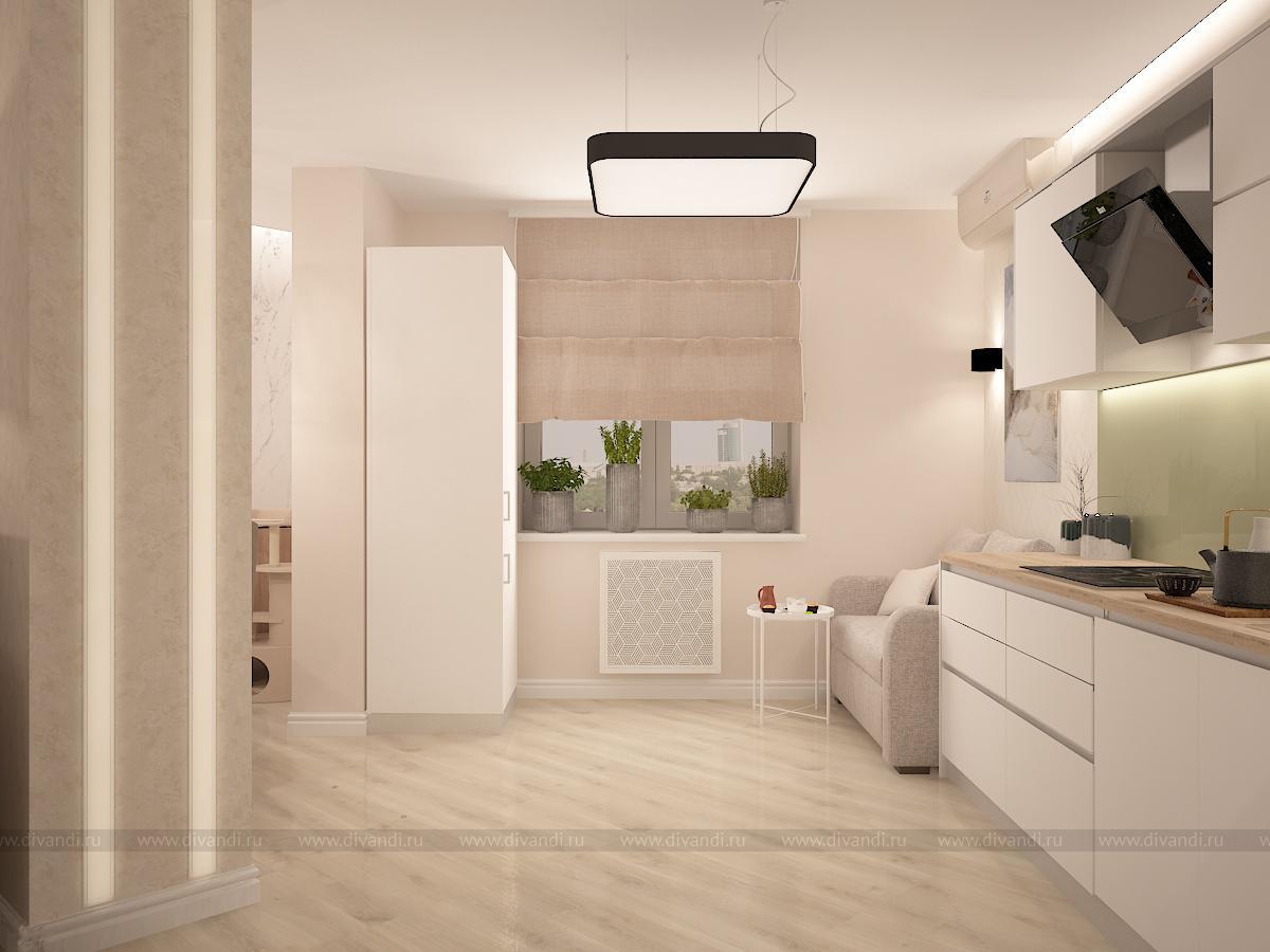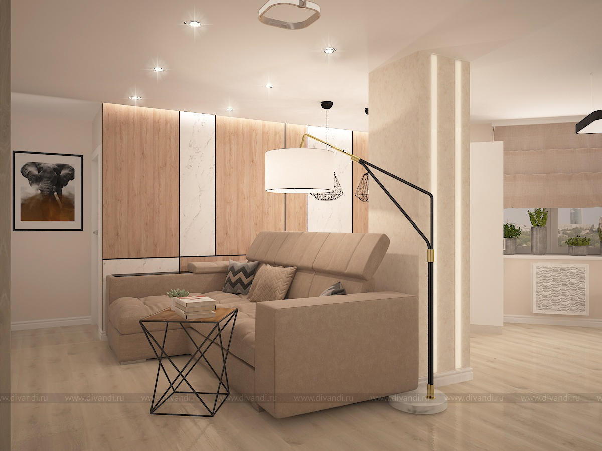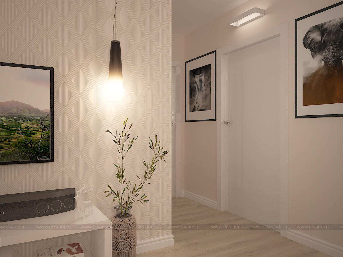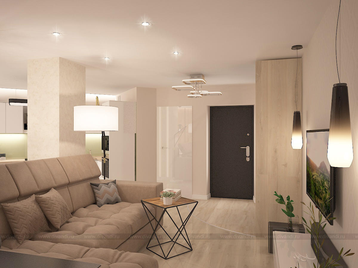 Перед дизайнеров стояла задача из двухкомнатной квартиры сделать трехкомнатную. Изначально в гостиной было 2 окна, мы отделили часть гостиной с окном под детскую, убрали перегородку в коридоре и вынесли туда зону с диваном.