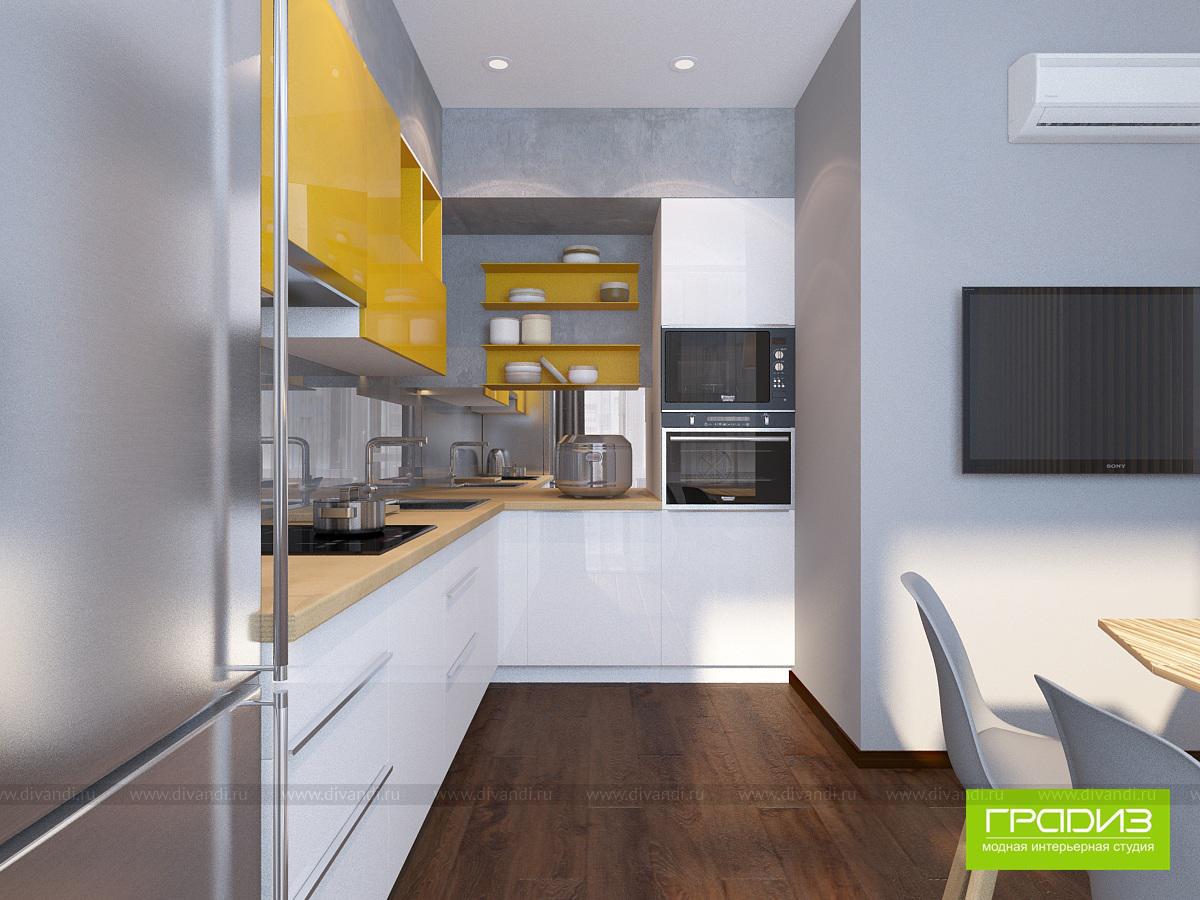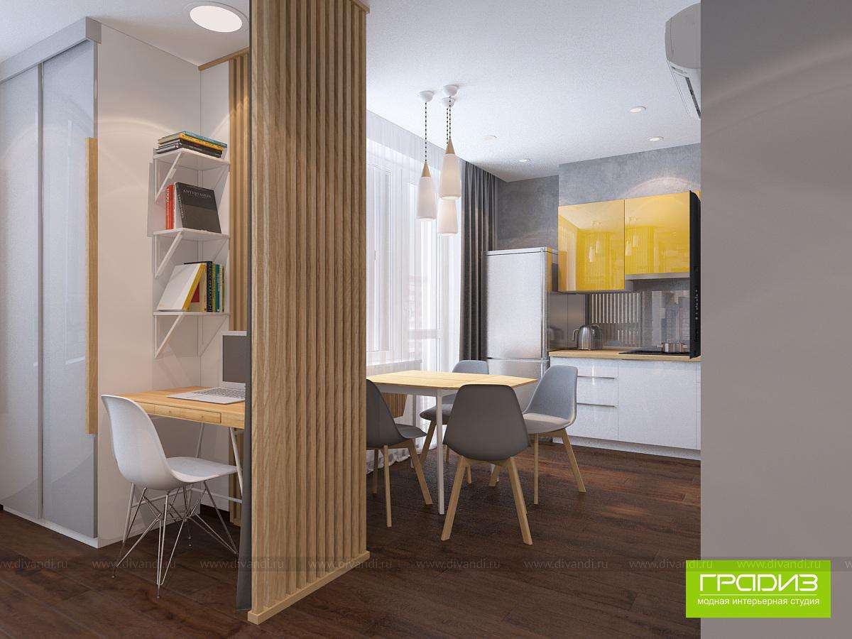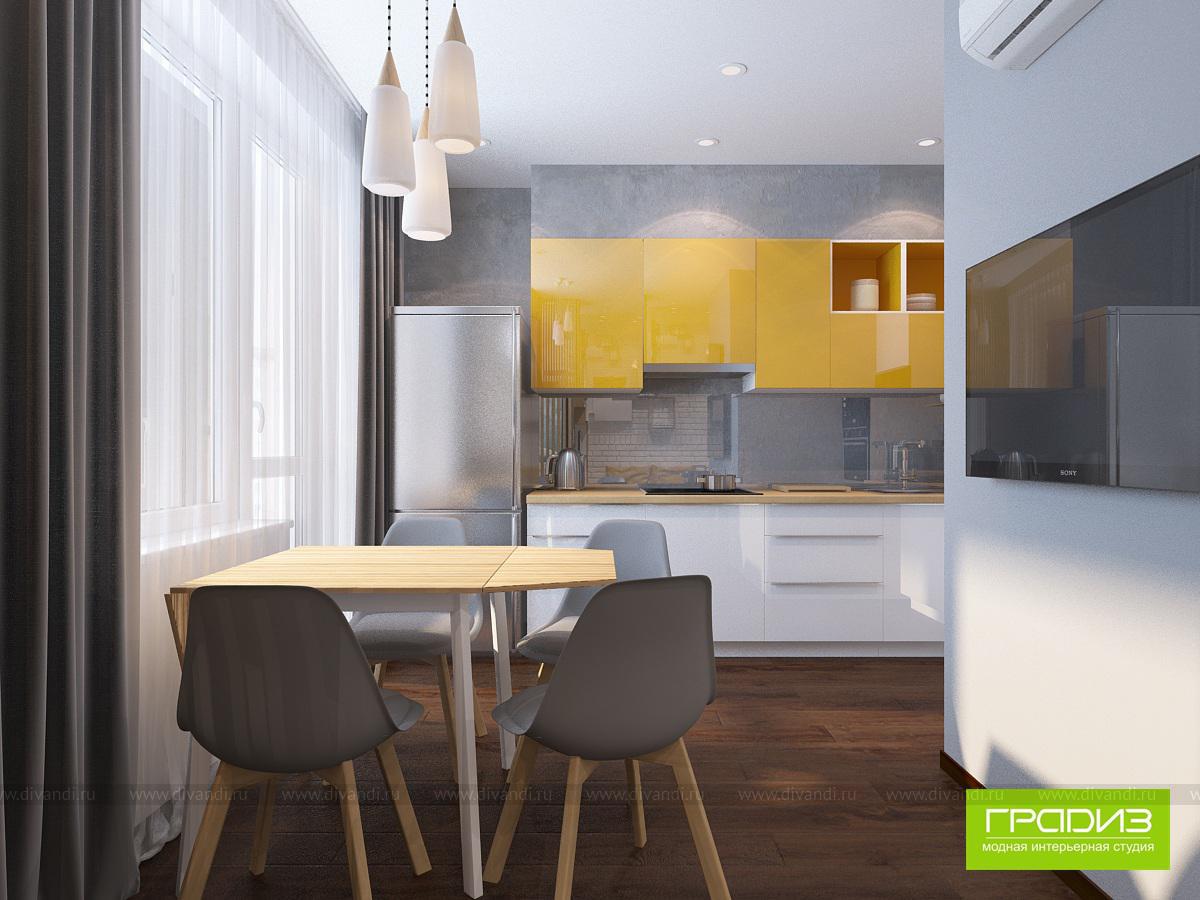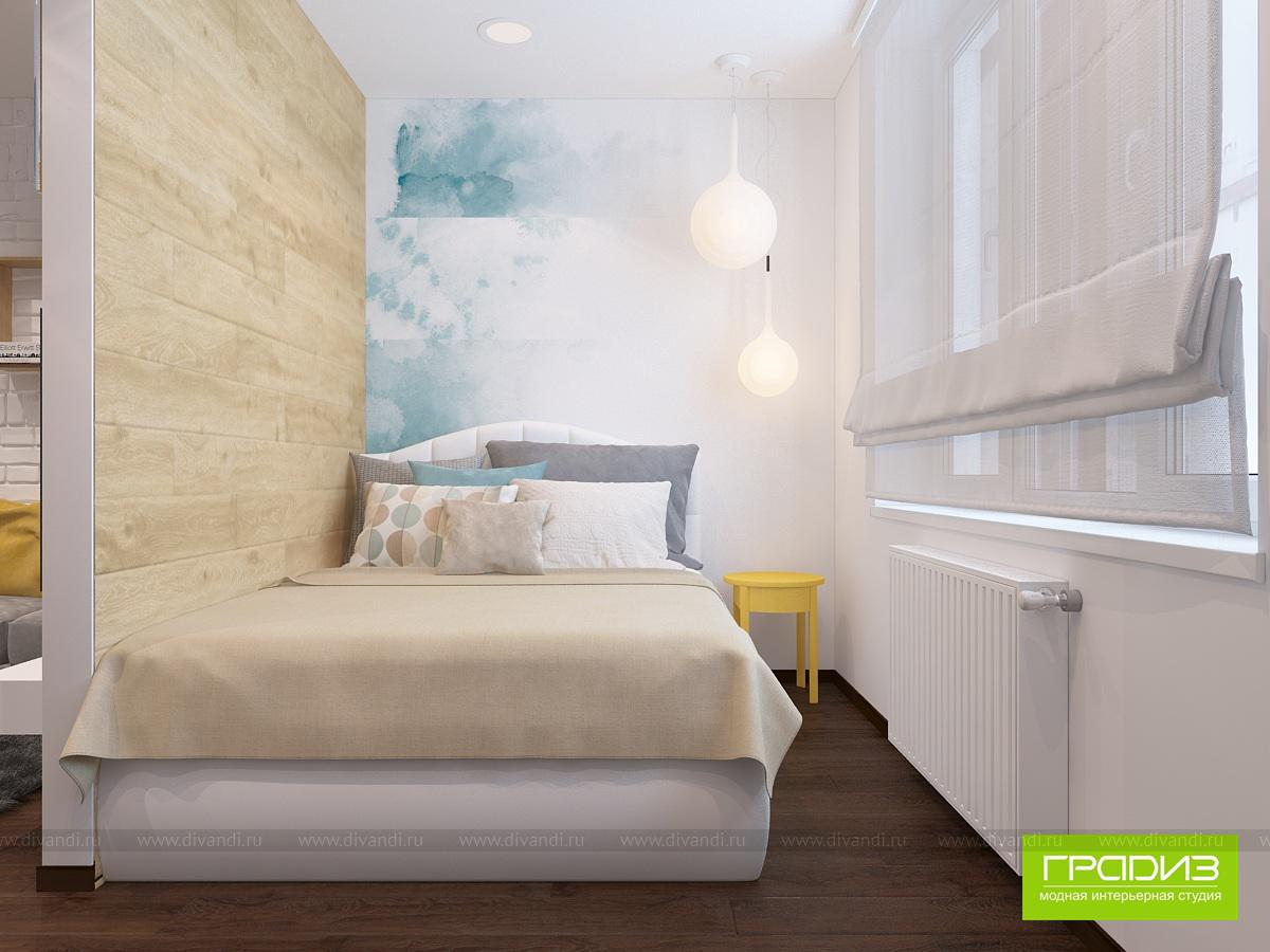 В этой однокомнатной квартире в ЖК "Мечта" будет жить пара студентов, которым родители купили квартиру. В интерьере нет каких-то очень дорогих решений, дизайн построен на интересном сочетании материалов и цветов. Чтобы выделить зоны, используются акценты в виде оригинального декора, ярких стен и потолка, необычных светильников.