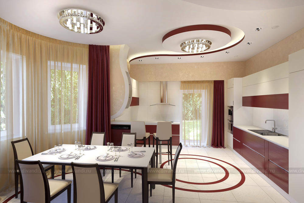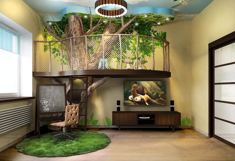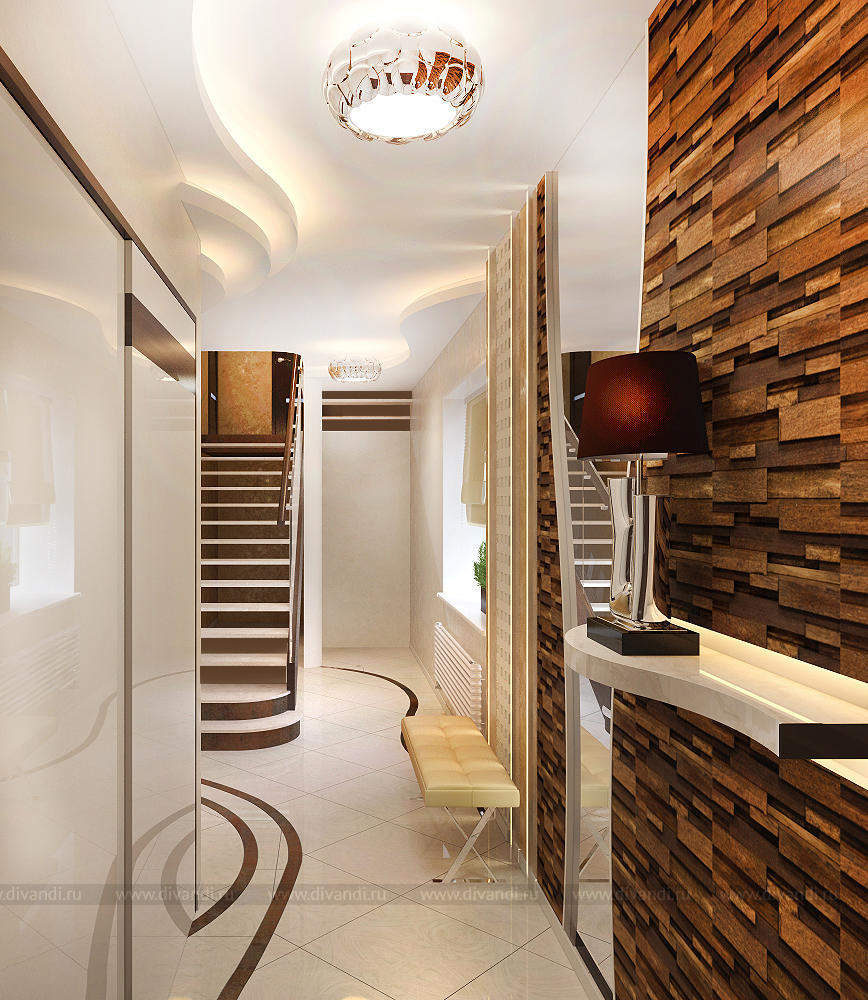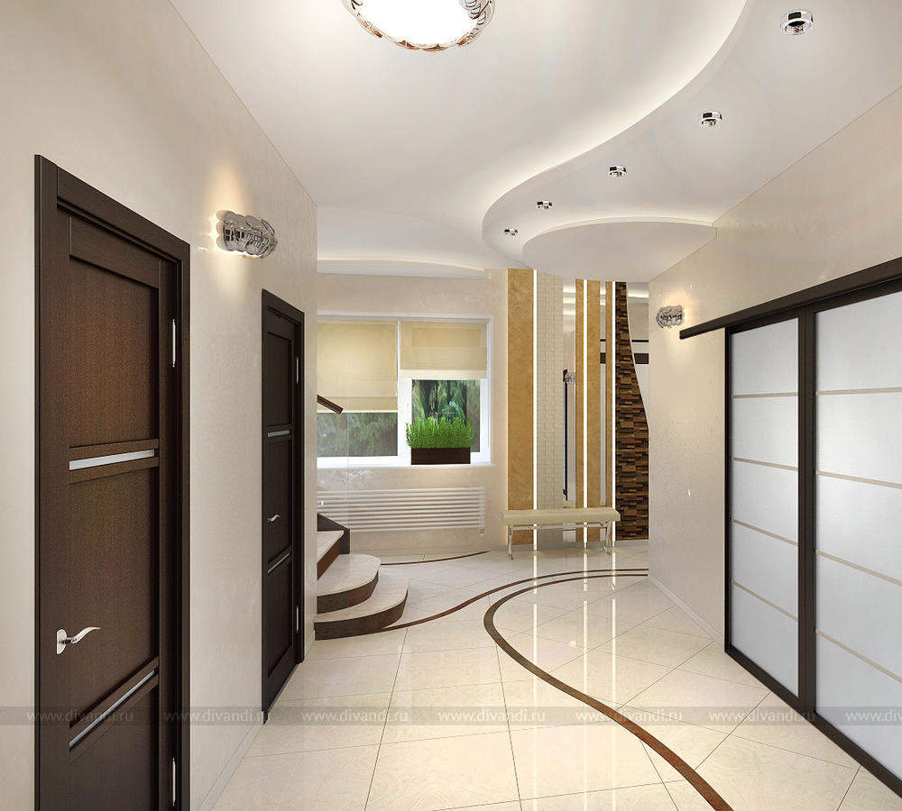 Заказчики точно знали, какой дом они хотят получить.Основным пожеланием было - плавные линии и формы во всем, закрытые шкафы и полки, эко - материалы.По материалам тоже сразу определились:1 этаж дома - плитка и декоративка.Освещение везде разное - люстры, диодная подсветка, встройка.Потолки хотелось интересные в 2- 3 уровня.Отдельное внимание можно уделить игровой комнате для двух сыновей.Половину комнаты занимает замок в 2 этажа, внутри которого находятся игрушки и зона отдыха.На противоположной стене мы попадаем в деревню с самодельным домом на дереве.Очень популярная тема.