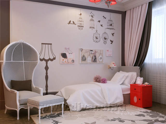 Дизайн интерьера комнаты для девочки "Фламинго"