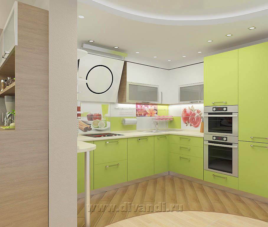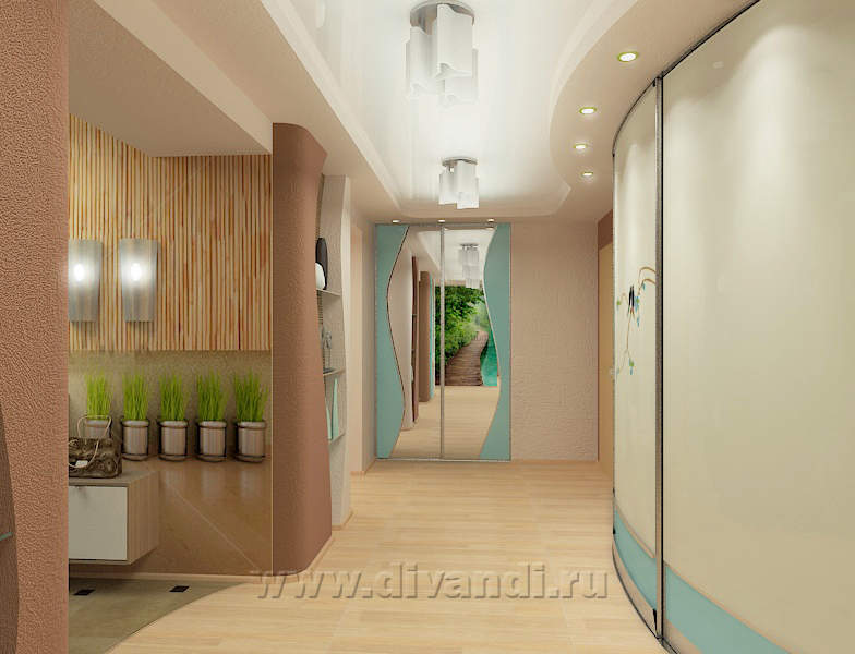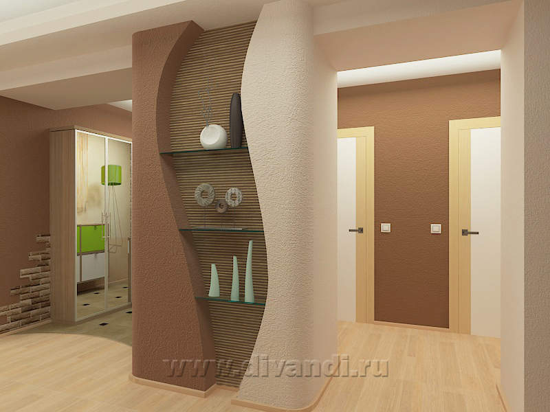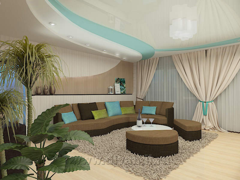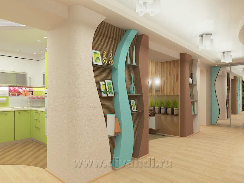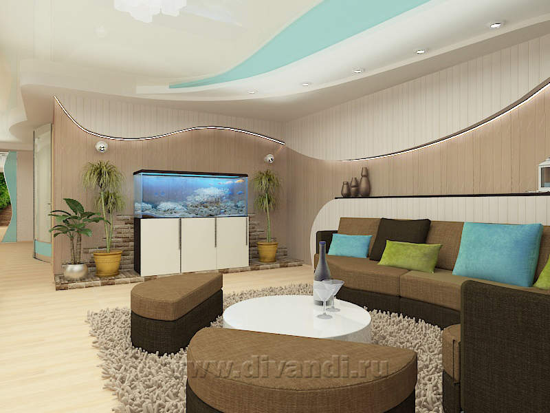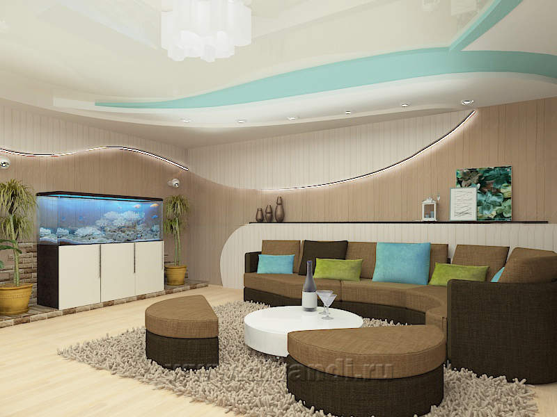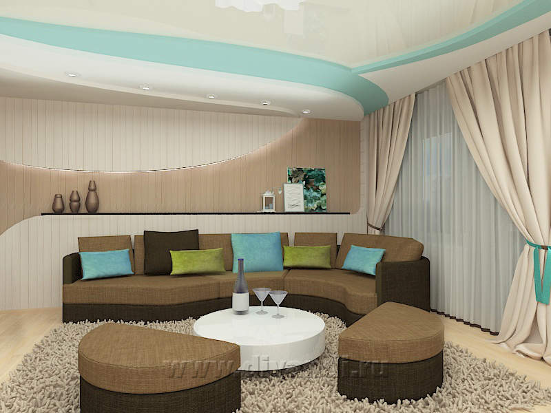 Проект 4х-комнатной квартиры в современном стиле для семьи из 5 человек. Особенностью проекта стали сложные радиусные конструкции на стенах и потолке.