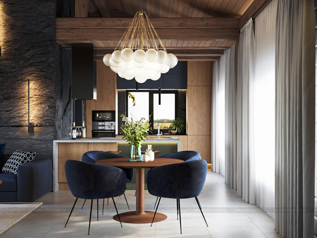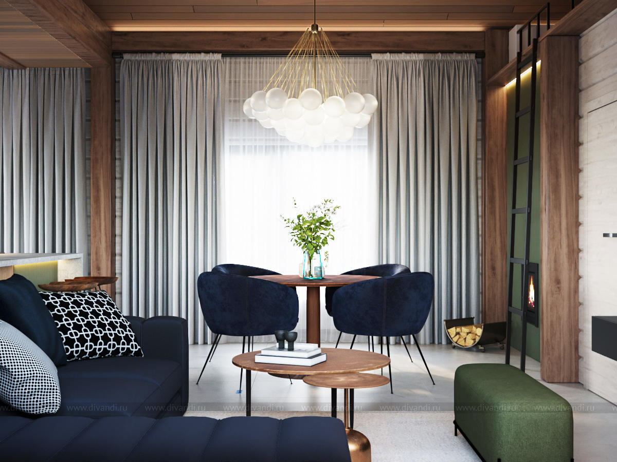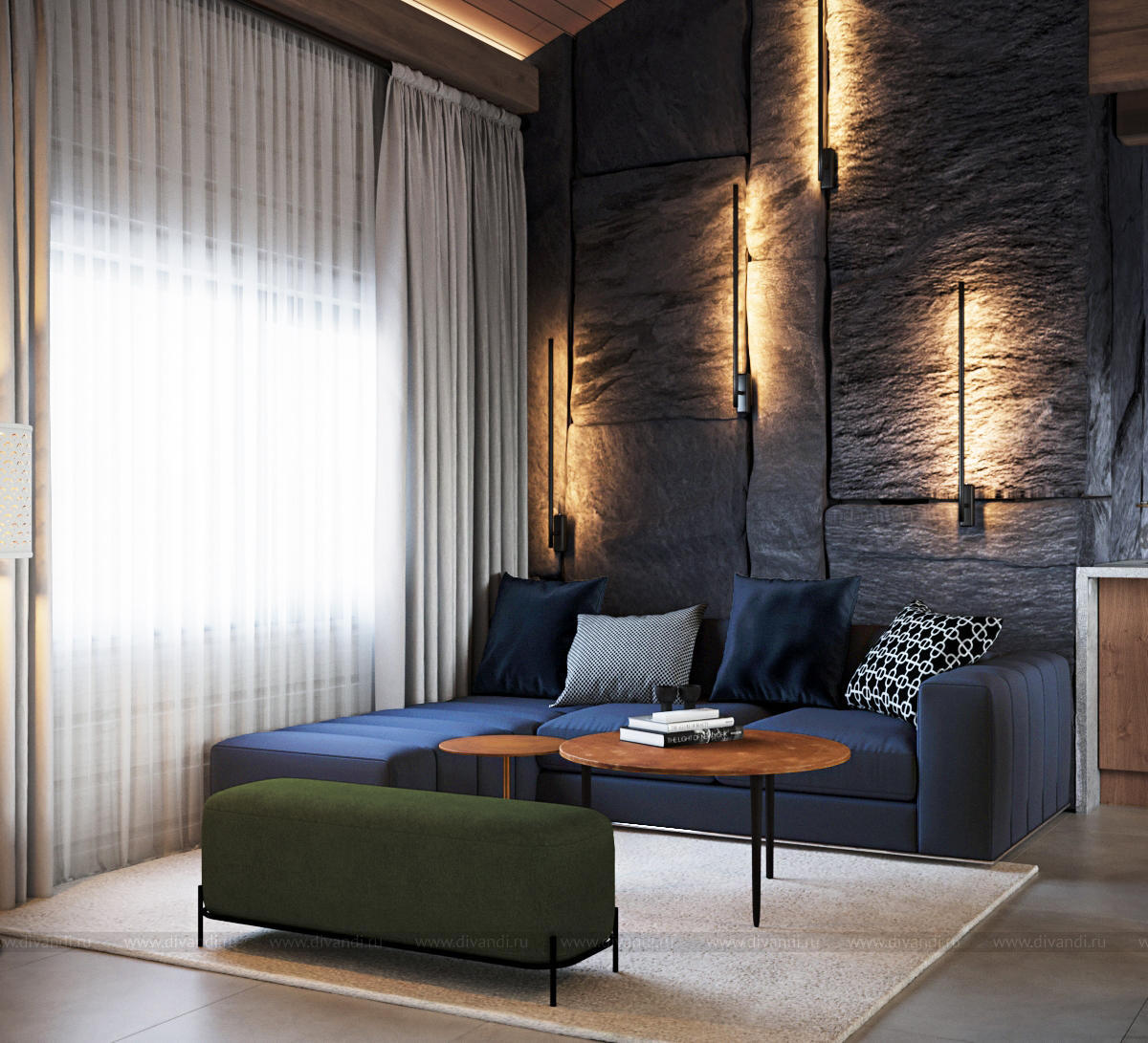 Заказчик очень любит путешествия, особенно по России — по Уралу, Байкалу и т.д. Мы же увидели в заказчике человека, для которого контраст является необходимым элементом. Связав всё вместе, мы пришли к идее природных мотивов. В природе всё смотрится органично, даже контрасты. Туман и камень, дерево и вода, оранжевый закат и синее небо, все противоположности притягиваются и создают некую идеальную среду, в которую мы и захотели поместить нашего заказчика. Так появилось название "Природный контраст".