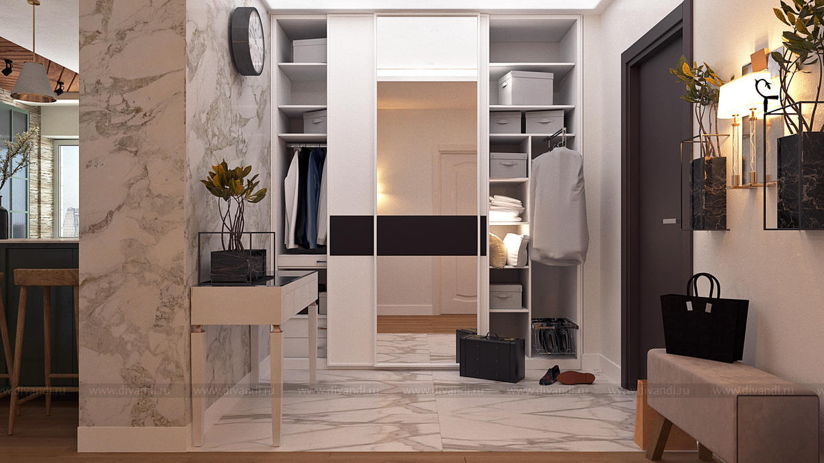 Дизайн прихожей совмещенной с холлом кухни-гостиной