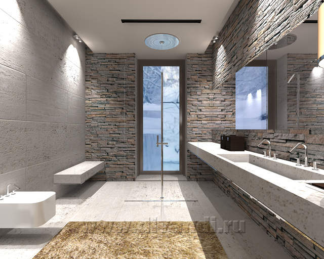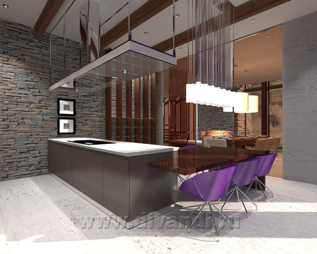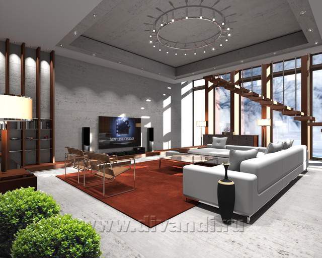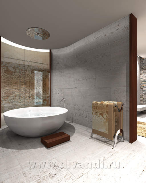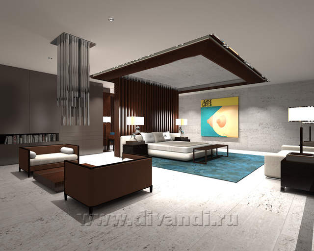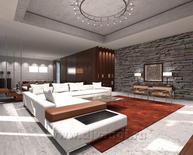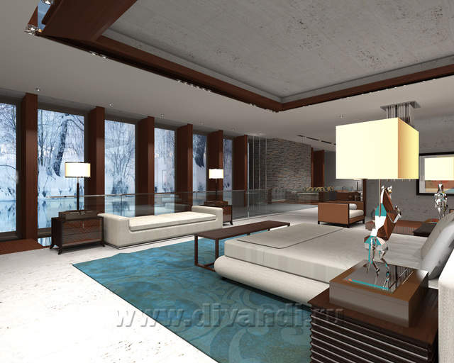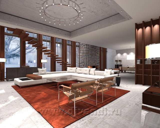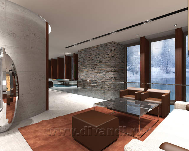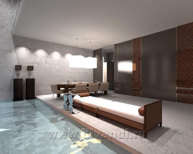 Проект №1 – это очередной дом мечты, разработанный студией дизайна CONSTANTIN FROLOV. Современный дизайн резиденции характеризуется «фирменной» угловатостью и зрелищностью, что свойственно всем проектам студии. Фасад дома выполнен из травертина и темно-серого гранита, с применением дерева. В качестве доминирующего выступает белый оттенок, причем как снаружи, так и внутри. Панорамные окна делают особняк еще более светлым, легким, неповторимым. На территории резиденции также разбит сад. Особняк представлен двумя этажами, основным и цокольным. Зайдя в дом через главный вход, вы попадаете в просторную гостиную, плавно переходящую в столовую. Отсюда предусмотрен выход на террасу, оборудованную для отдыха и барбекю. Рядом с бассейном с джакузи расположен бар, который пользуется наибольшей популярностью среди гостей. На этом этаже резиденции также расположены кухня, служебные помещения и блок для обслуживающего персонала с отдельным входом, включающий гостиную, две спальни и две ванные комнаты. На втором этаже представлена основная спальня, beauty zone, зона отдыха, ванная комната, санузел. Почти вся мебель для резиденции была индивидуально спроектирована дизайнерами студии CONSTANTIN FROLOV.