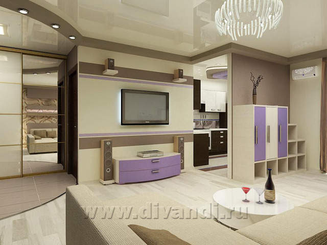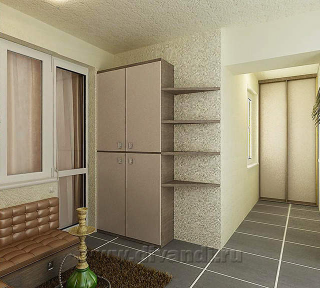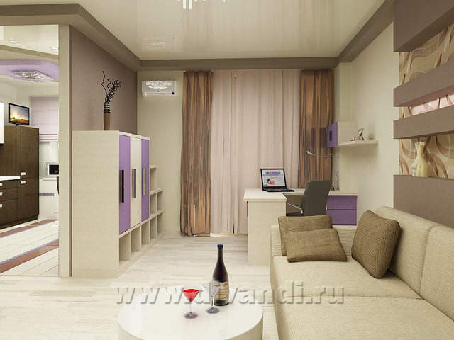 Проект 1-комнатной квартиры (коридор, гостиная, кухня, балкон)