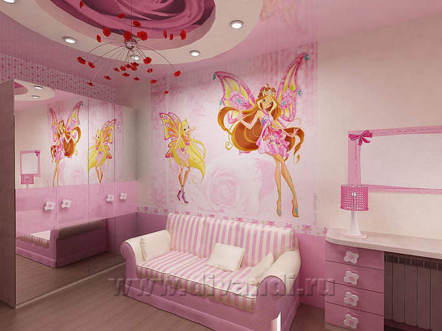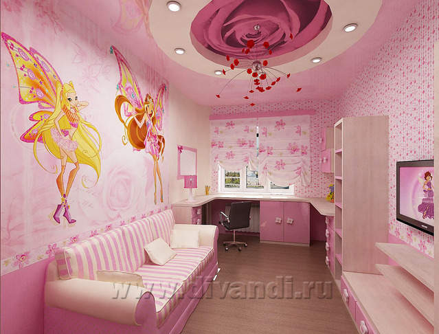 Дизайн интерьера комнаты для девочки "Фламинго"