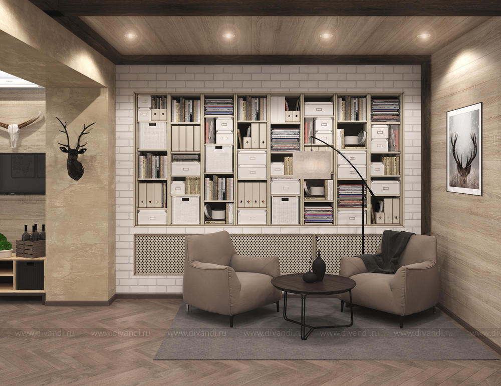 Основная идея дизайна заключается в единении с природой, что позволяет максимально расслабиться после рабочего дня. В концепции дизайна использованы натуральные экологичные элементы отделки в виде светлой деревянной обшивки и легких деревянных брусков. В помещении задействовано большое количество естественного освещения, что придает ощущение свежести и простора.