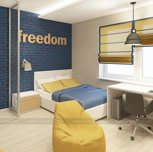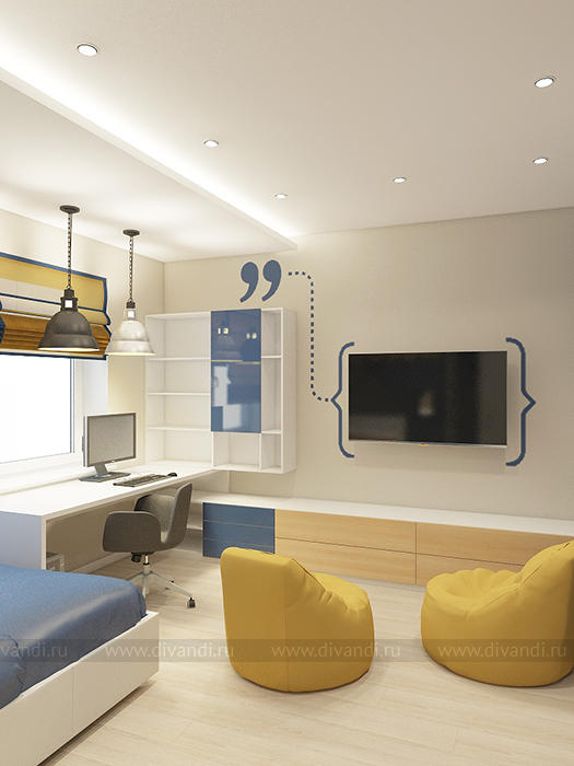 Стильная, современная детская для подростка. Светлая с яркими и привлекательными цветовыми пятнами. Максимально практичная для отдыха, обучения ребенка.
