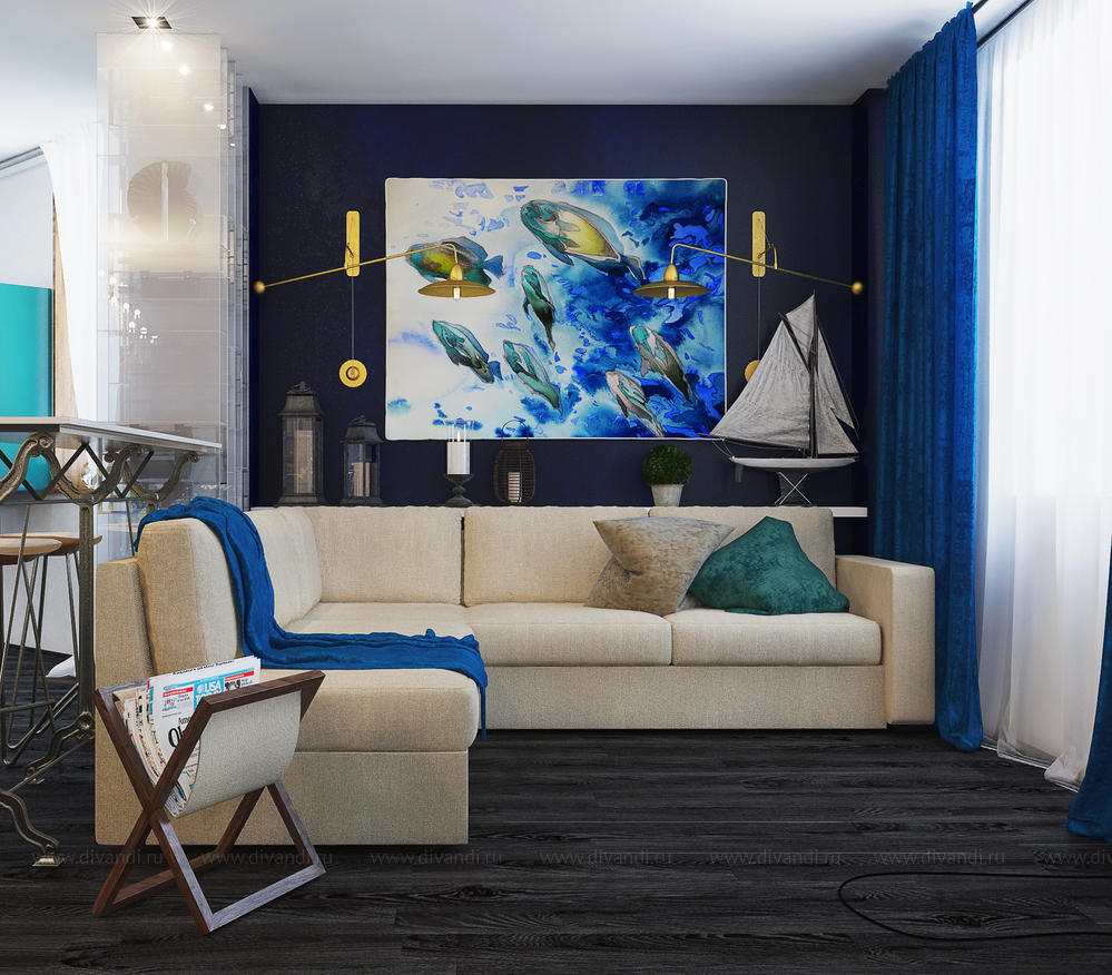 Хозяевам квартиры хотелось, приходя домой, абстрагироваться от серости и суеты города. Поэтому в интерьере присутствует много цвета, растительные мотивы и этнические детали, которые не ожидаешь увидеть в привычной городской квартире. В гостиной и кабинете прослеживается морская тематика, а в прихожей и спальне - немного тропиков!