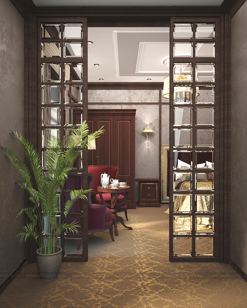 Представляем вашему вниманию проект номера категории люкс для гостиницы в Екатеринбурге. Уютный классический интерьер несет в себе тепло домашнего очага.