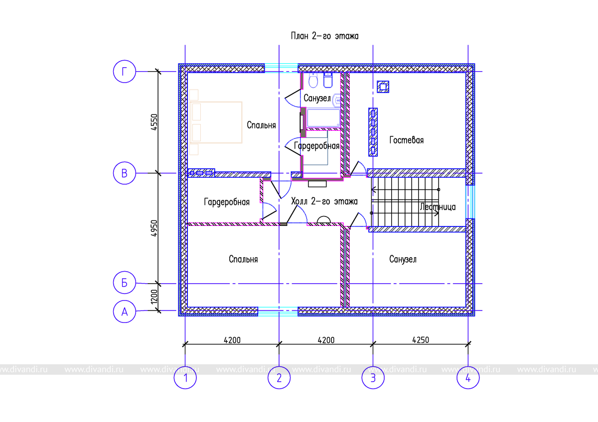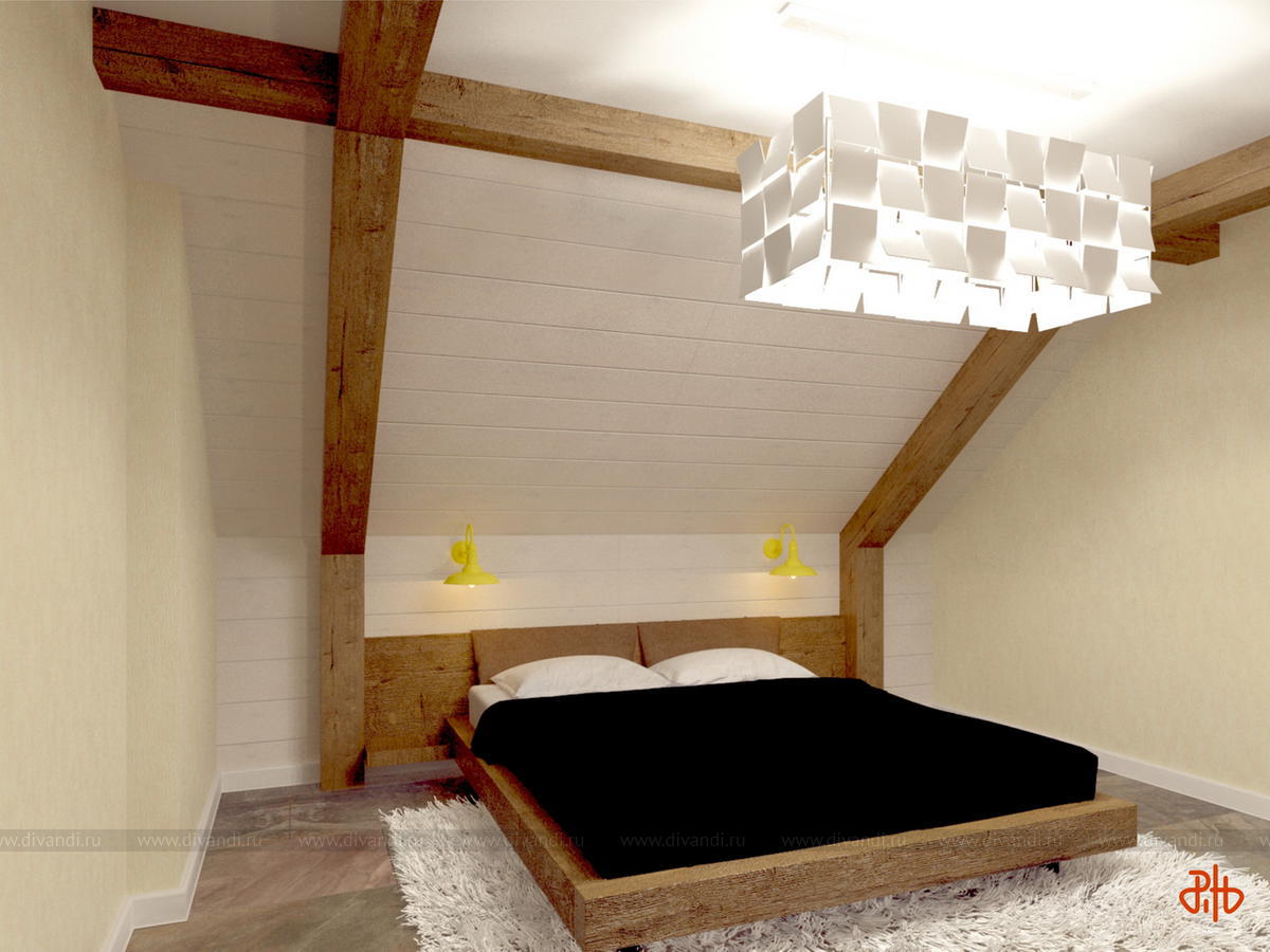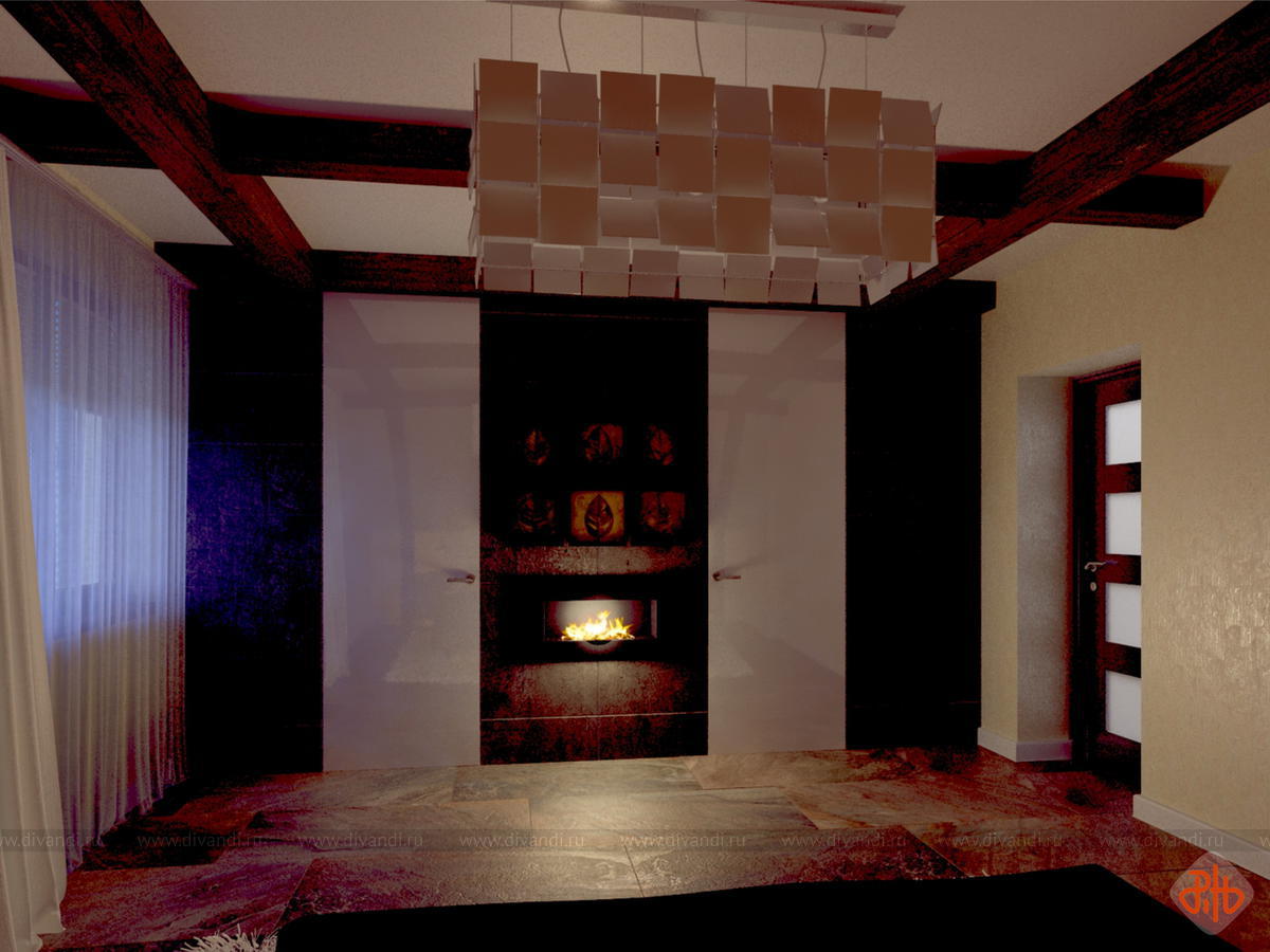 Интерьер хозяйской спальни в двухэтажной коттедже в КП Алексеевка (пригород г. Екатеринбурга). Двери в скрытом коробе ведут в личную гардеробную и ванную комнату. В проекте использован светодизайн.