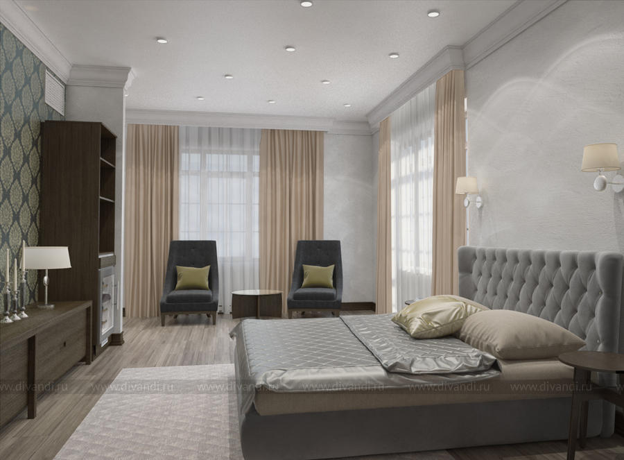 Тип проекта: загородный дом, спальня, гостиная