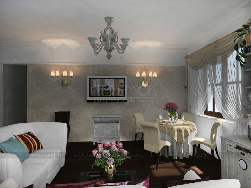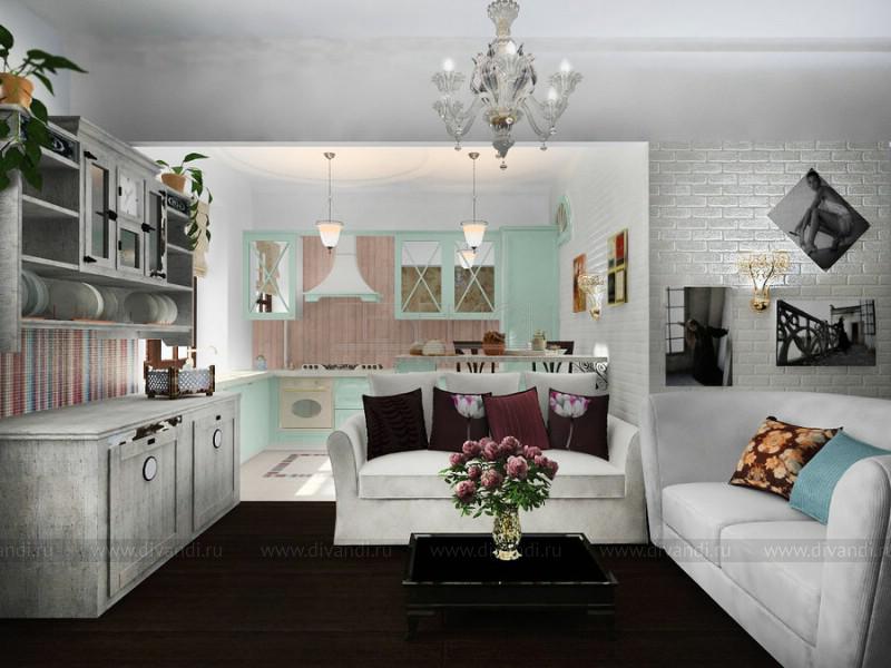 Тип проекта: квартира, кухня, гостиная