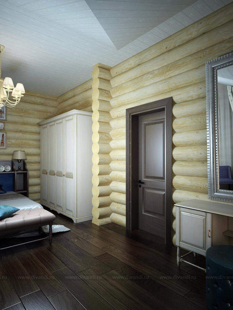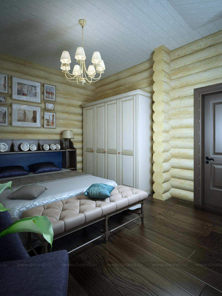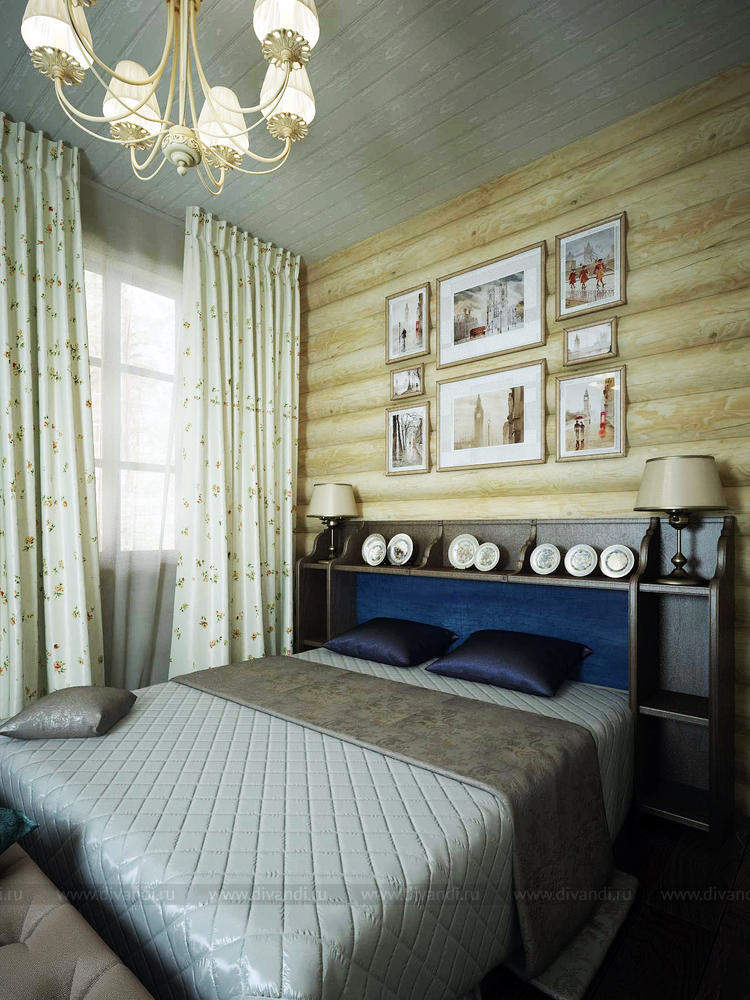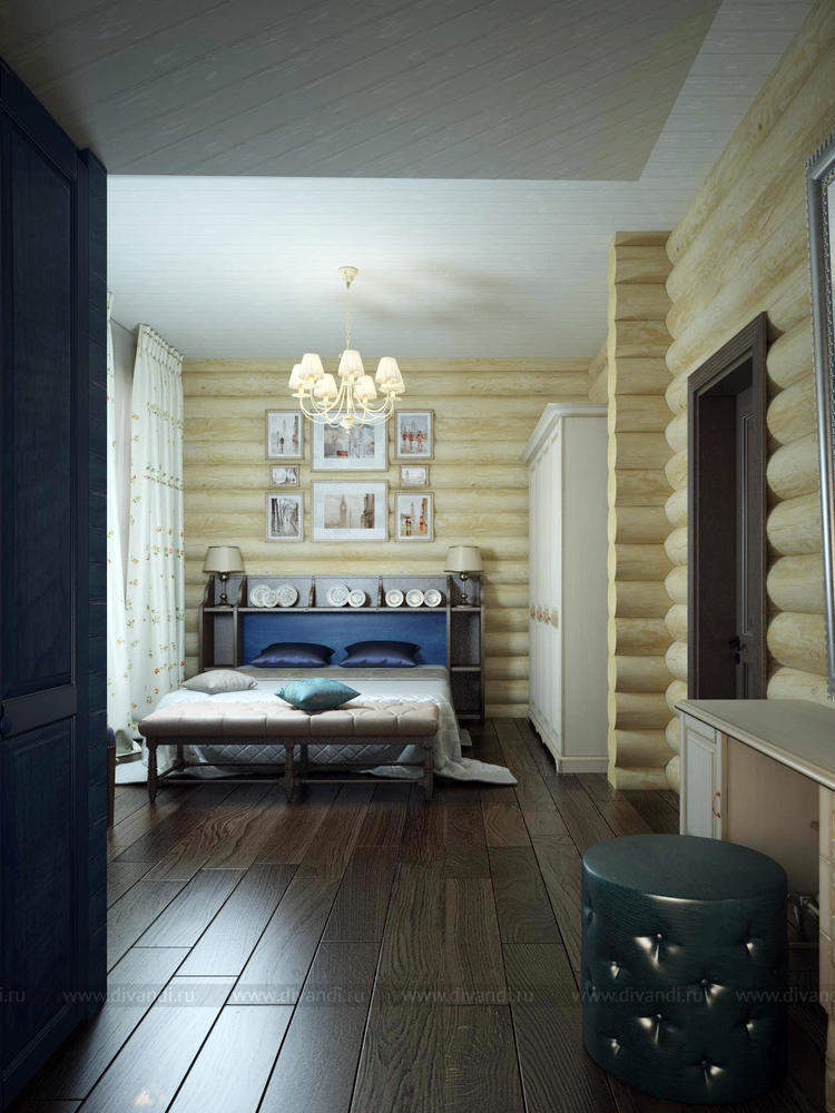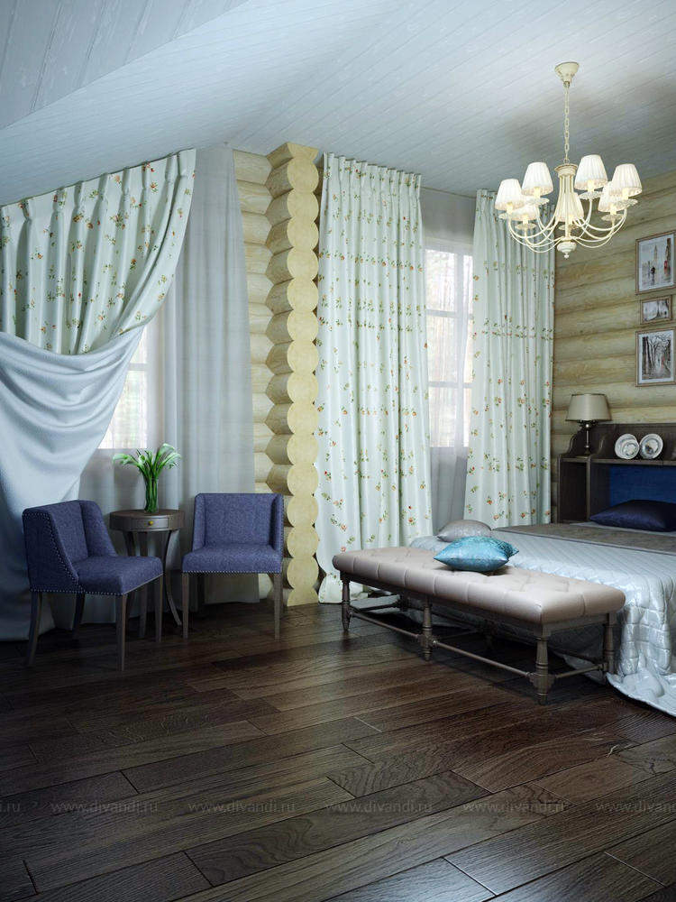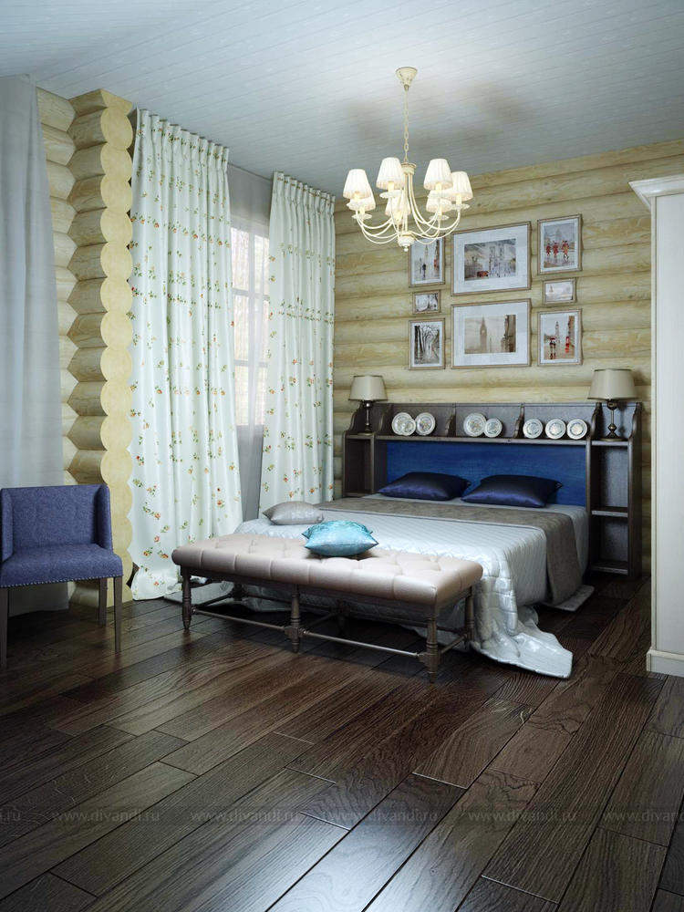 Проект спальни в стиле Прованс в загородном двухэтажном бревенчатом доме, площадью 180 кв. м. с.