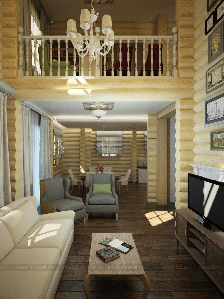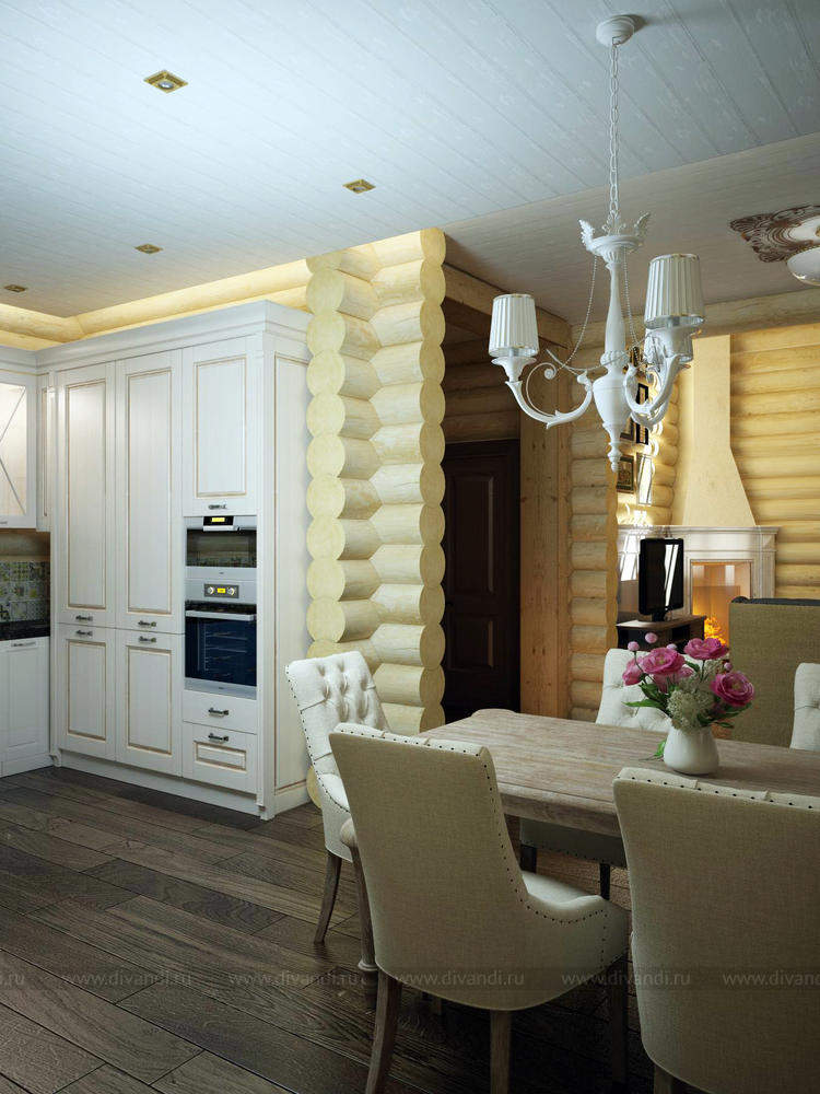 Проект в стиле Прованс в загородном двухэтажном бревенчатом доме, площадью 180 кв. м.