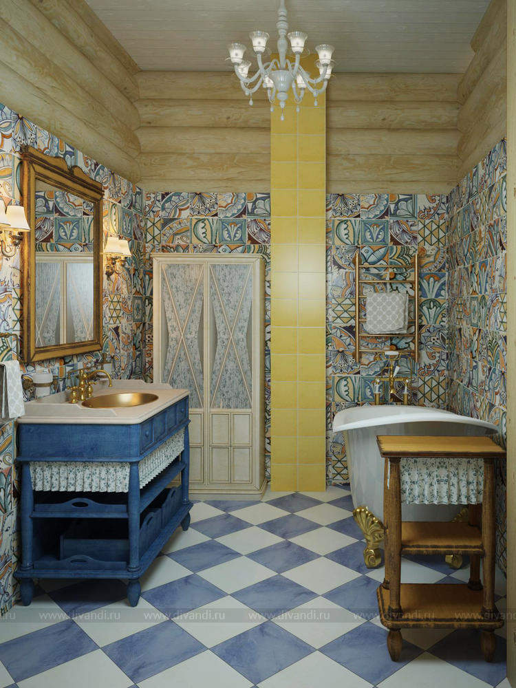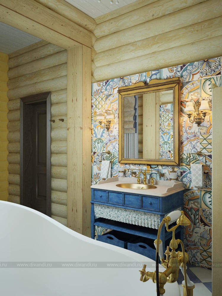 Проект в стиле Прованс в загородном двухэтажном бревенчатом доме, площадью 180 кв. м.