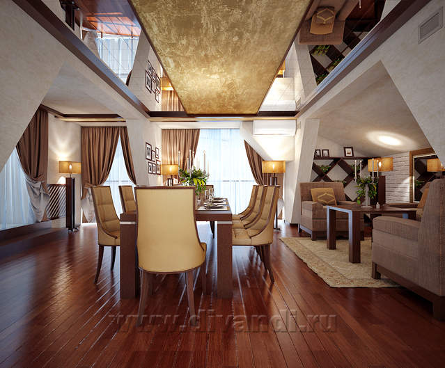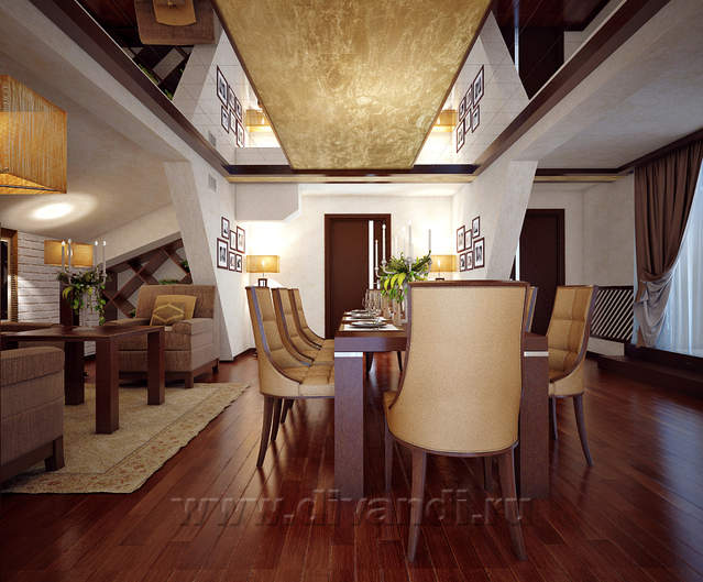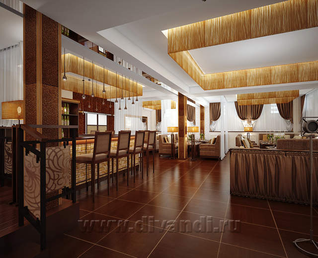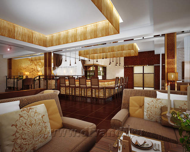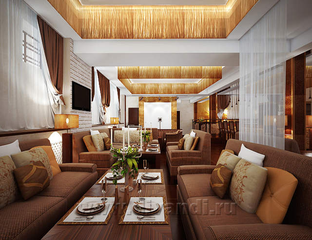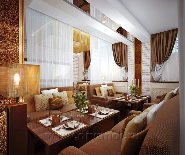 С заказчиком данного проекта мы знакомы давно и ресторан "золотая черепаха" обрел второе дыхание. 7 лет назад создавая интерьер была концепция японской кухни в сочетании двух цветов. Белого и золотого. Сейчас зал 1 этажа переоборудован под "лаунж бар" с "живой музыкой" и приглашенными звездами эстрады. Появилось место для танцев и большая барная стойка. Конструктивно потолки меняли не сильно. Планировка также была сохранена (поменялись кол-во посадочных мест). К этому же залу хозяйка решила добавить еще один приватный банкетный зал, расположенный в мансардном помещении старого особняка-памятника архитектуры.Основные цвета остались прежними: белый, золото и дерево.