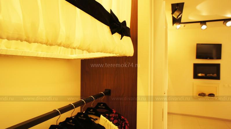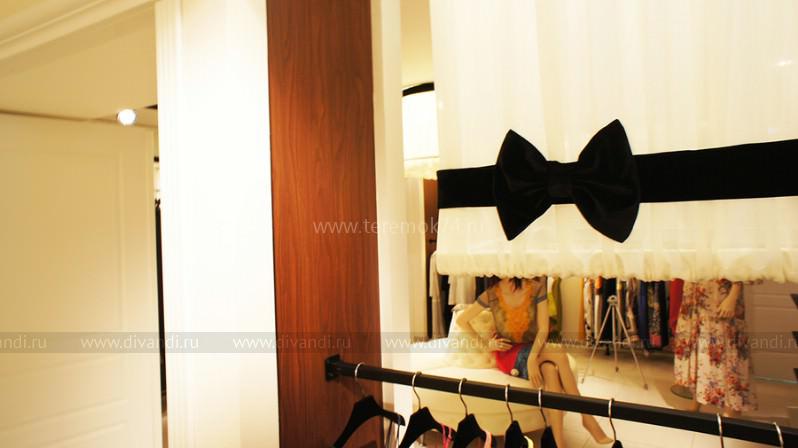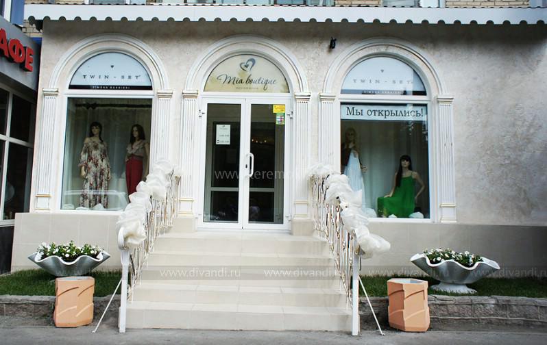 Mia boutique – самый романтичный магазин в Челябинске! Все предметы интерьера создавались по индивидуальному эскизу. Романтичное настроение задают люстры – разработанные нами, совместно с декораторами. Каждая круглая люстра, в центре каждого из залов, состоит из 500 роз! Элегантным черным бантом и ленточкой украшены все светильники в магазине. Вход в каждый из залов выполнен в виде дверной инсталляции. Множество зеркал и текстиля создают эффект романтичной сказки, в которой теряются пространство и границы! Также нами был разработан фасад магазина – большие арочные панорамные витрины, кованая лестница, украшенная текстилем, и декоративная штукатурка с позолотой. Бутик находится в центре города, на улице Красной, д.69, где Вы всегда можете оценить нашу новую работу!