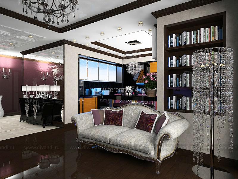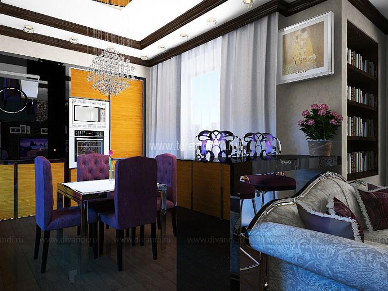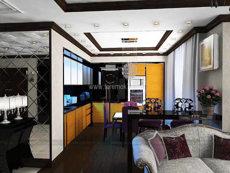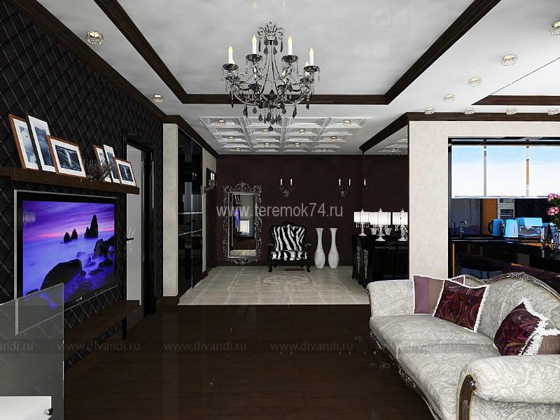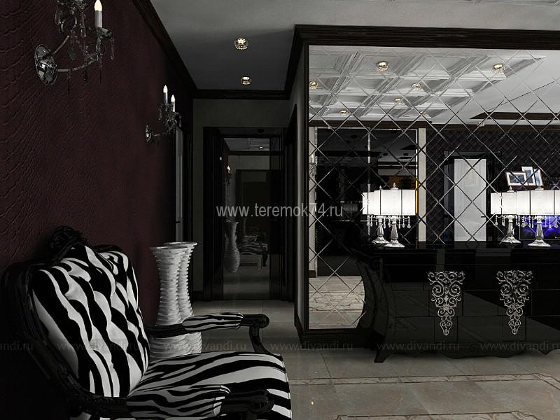 Барокко можно охарактеризовать одним словом – роскошь. В интерьере он известен как самый элегантный и популярный стиль. Он хорошо подходит к современному или же классическому интерьеру, что позволяет свободно сочетать мебель разных стилистических направлений. Мебель, люстры, подсвечники, ткани и другие аксессуары в стиле барокко производятся в большом количестве вариантов, что позволило им в данном проекте идеально вписываться в современные цвета и фактуры стен. Массивная мебель на гнутых ножках, украшенная резьбой и серебряным рельефом, шелковые обои, обилие бархата, тяжелая посеребренная рама зеркала, большие люстры с хрустальными подвесками, лепнина и фактурные стены делают этот интерьер по-настоящему роскошным.