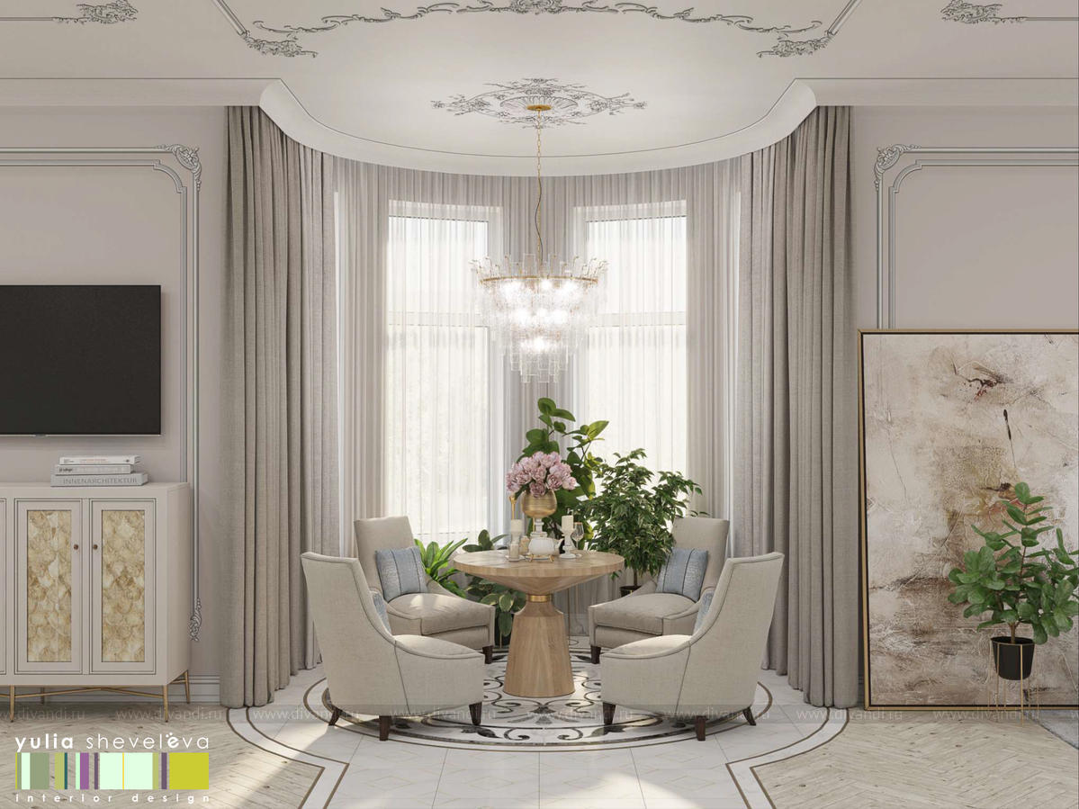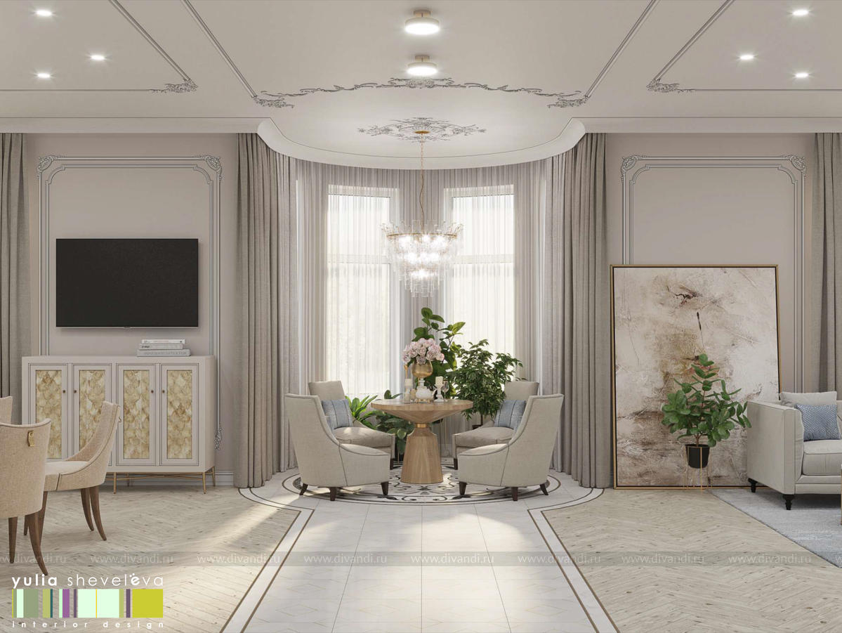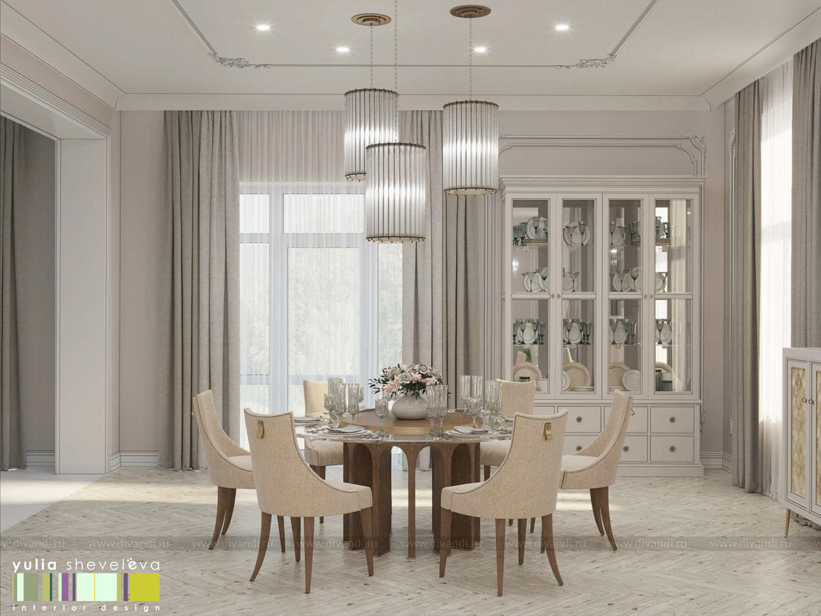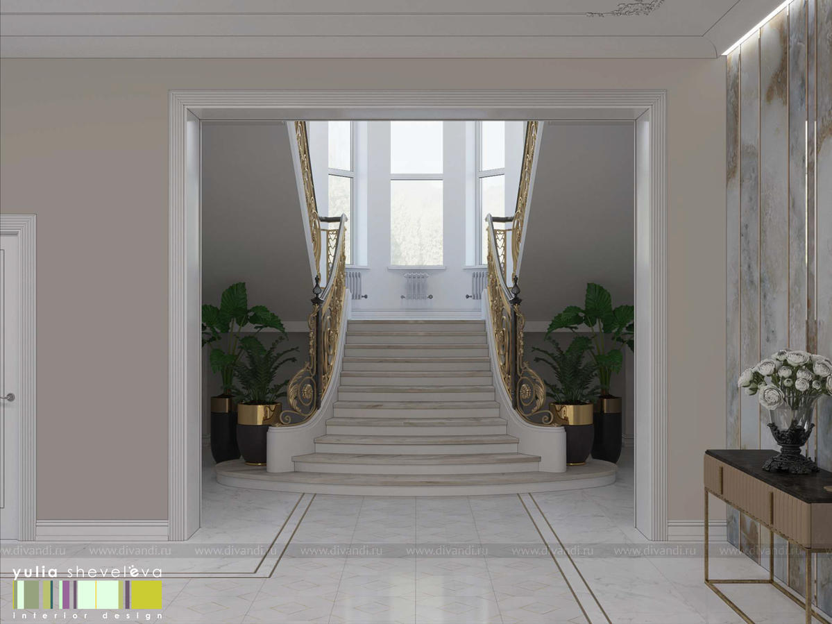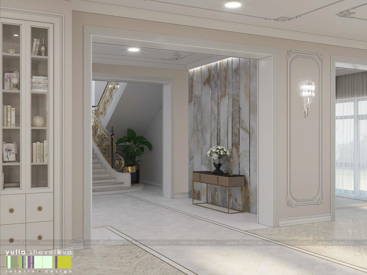 Дизайн интерьера загородного дома в легком классическом стиле.