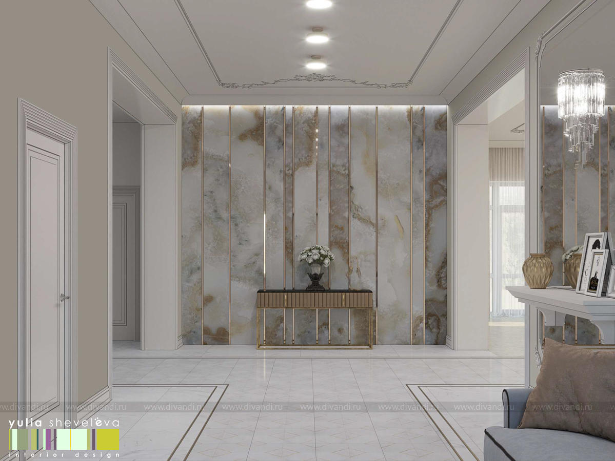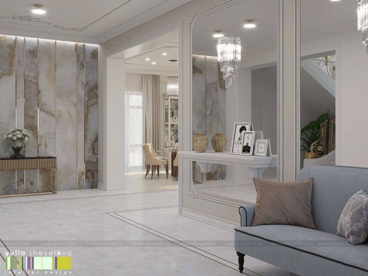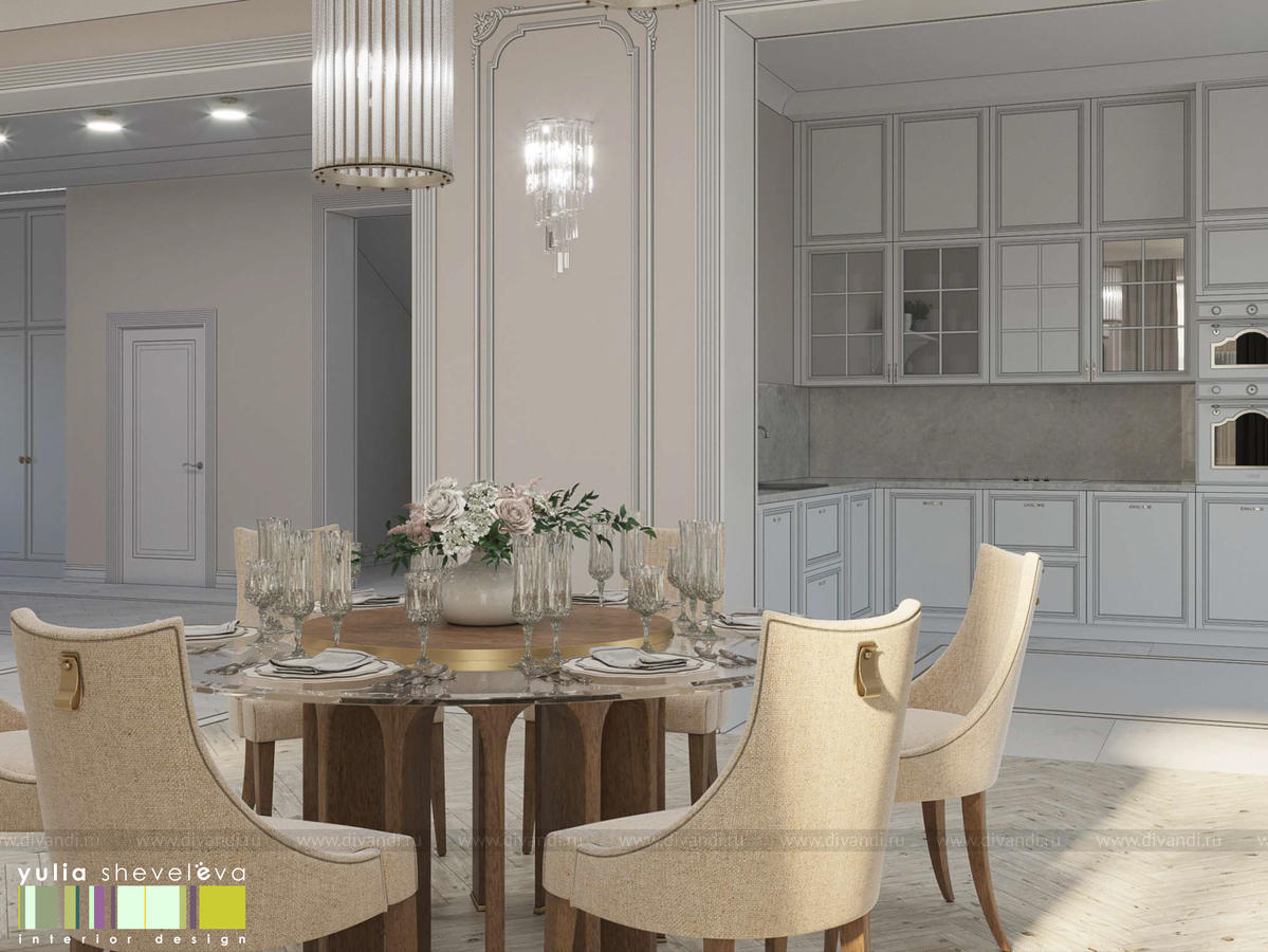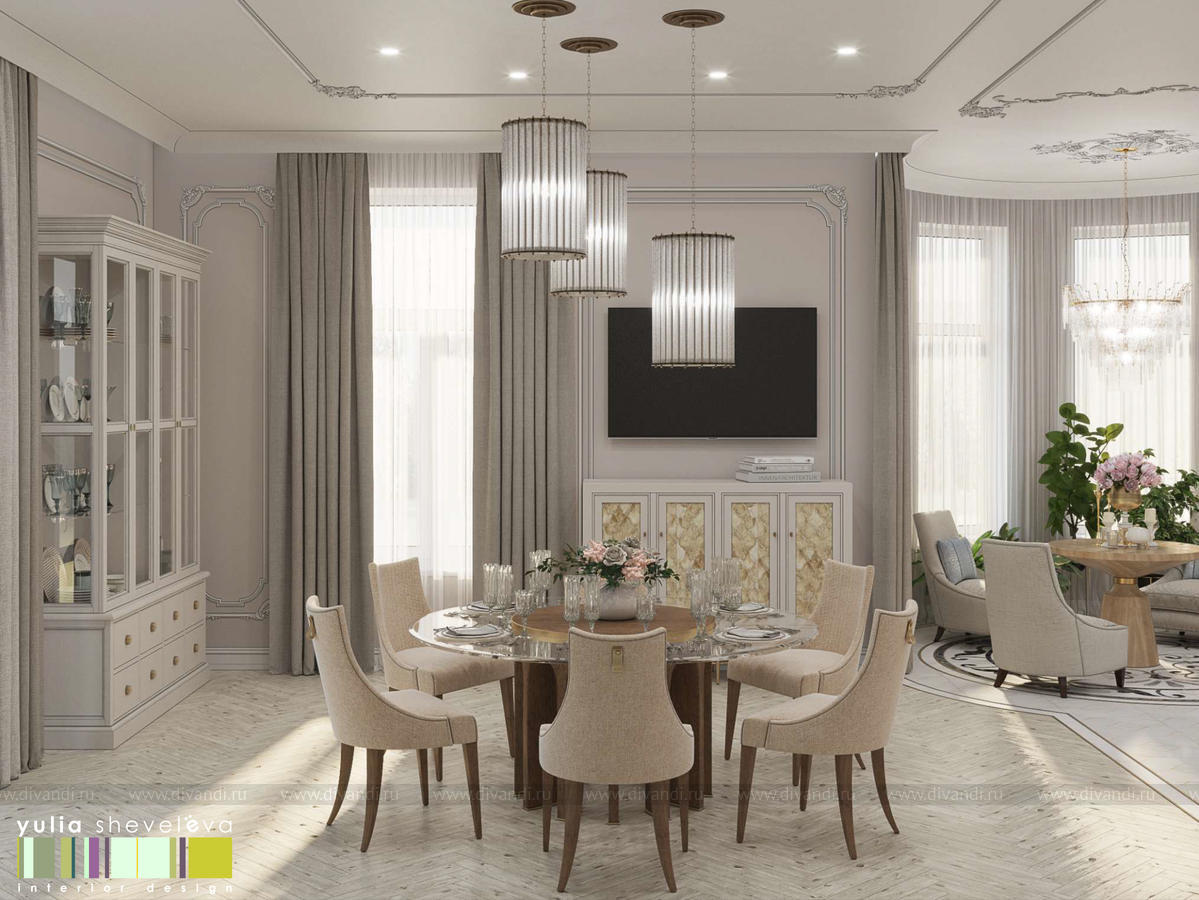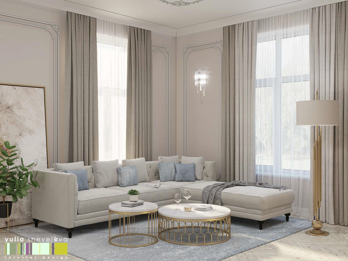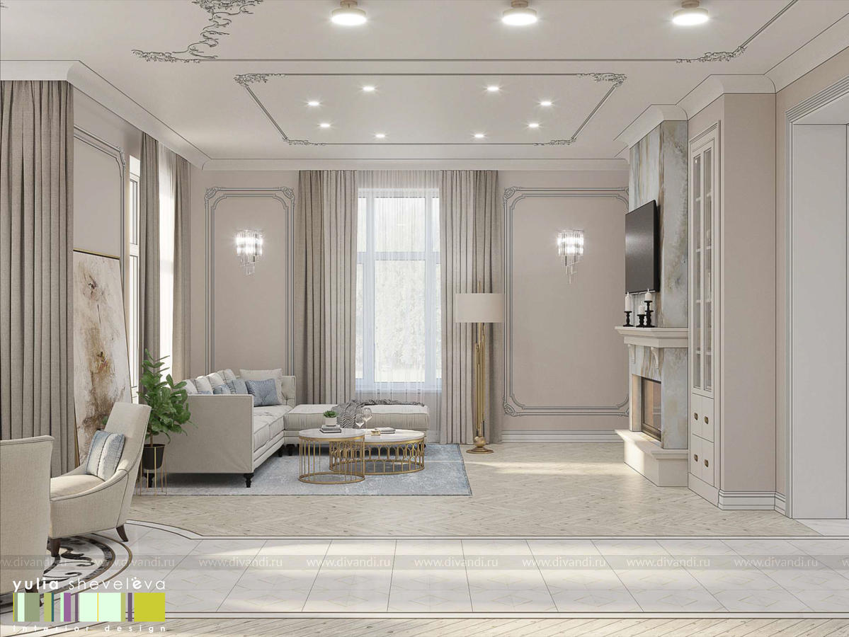 Дизайн интерьера загородного дома в легком классическом стиле.