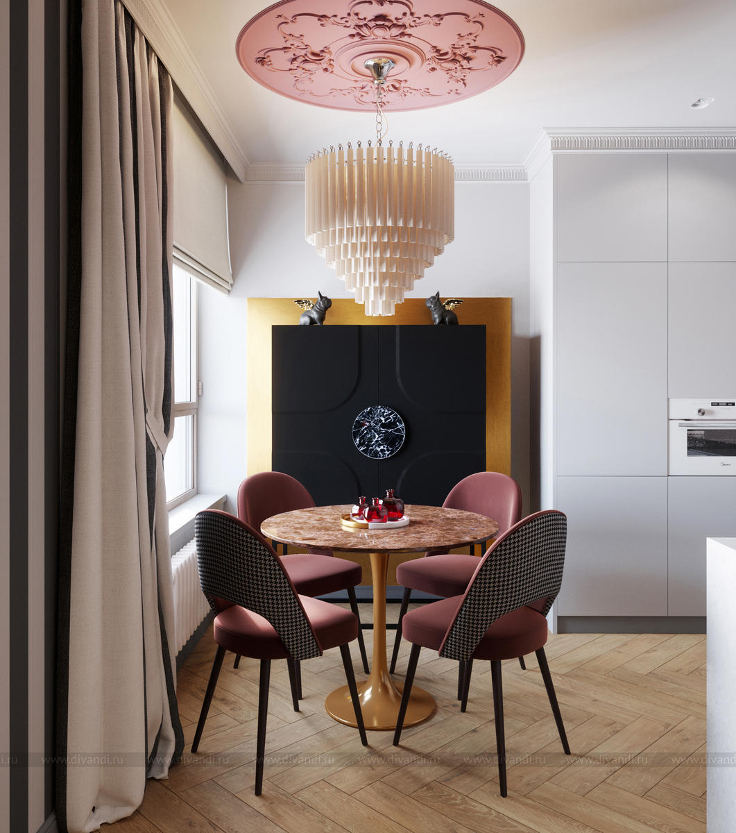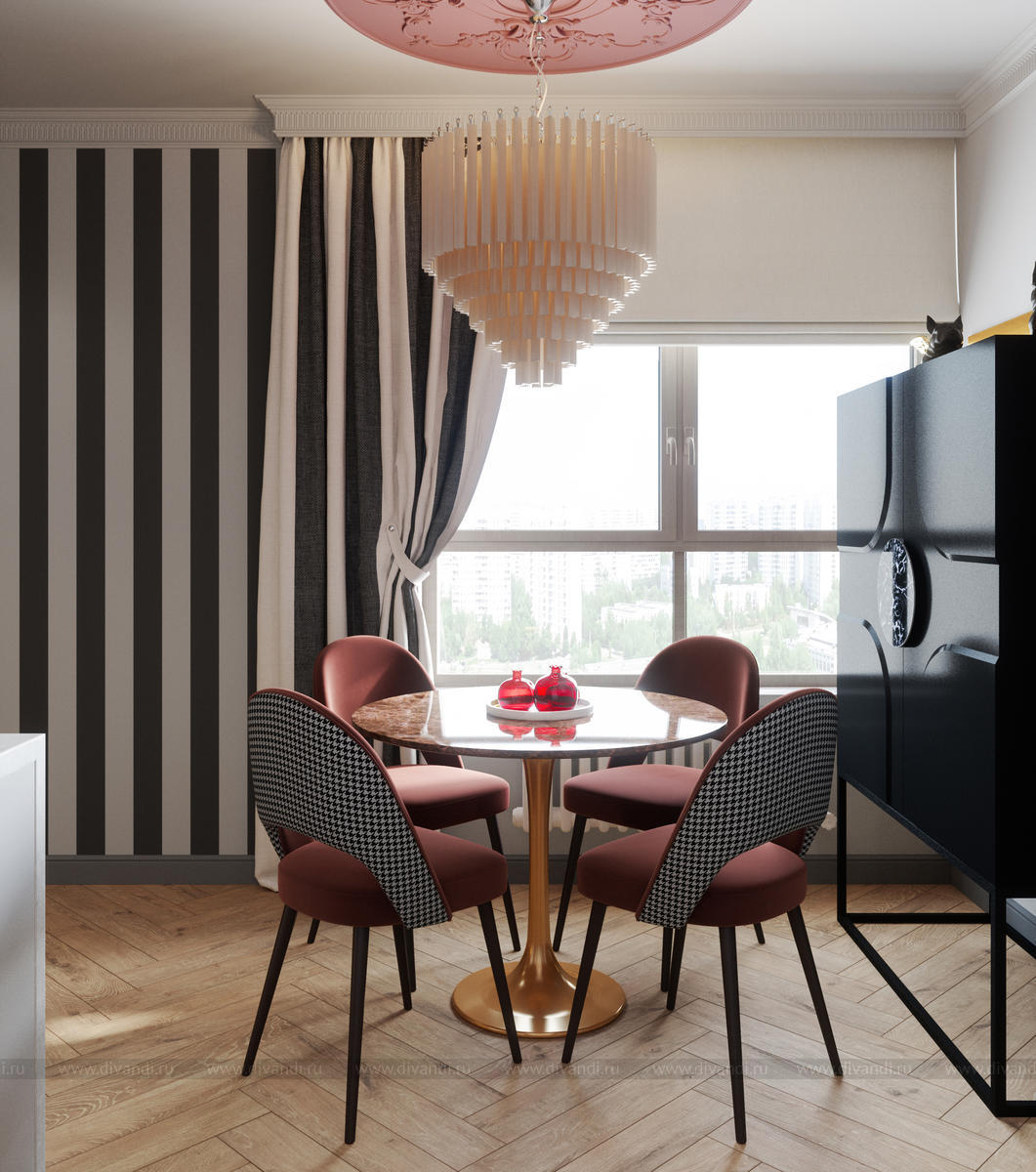В квартире будет проживать одна женщина. Она элегантно одевается, предпочитает ягодные оттенки в своем гардеробе. Характер новаторский, решительный. И в качестве одного из хобби - швейное дело. Именно считав ее образ, характер и увлечения, мы провели некую параллель между заказчицей и Коко Шанель. И попали в точку. Изучив особенности стиля Шанель, каждое из помещений мы одели в свой неповторимый наряд. Интерьер получился утонченным, сочным, строгим, но в то же время простым и роскошным. Отсюда и название этого проекта.