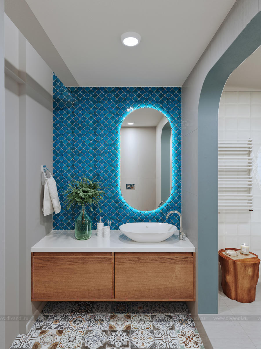 У заказчиков очень сложная работа, связанная с медициной, с постоянным общением с людьми. И приходя домой, им необходимо уединение и отдых. На наш взгляд, именно единение с природой помогает качественно восстановить силы. Оказалось, что им очень близко творчество импрессионистов, которые так любили писать солнечные пейзажи. При создании этого интерьера мы вдохновлялись картинами Моне и его прекрасным садом в Живерни. У нас получилась своеобразная игра в сад. Элементы и цветовые акценты, которые мы использовали, создали необходимую атмосферу тепла и безмятежности, которыми пропитан цветущий сад.