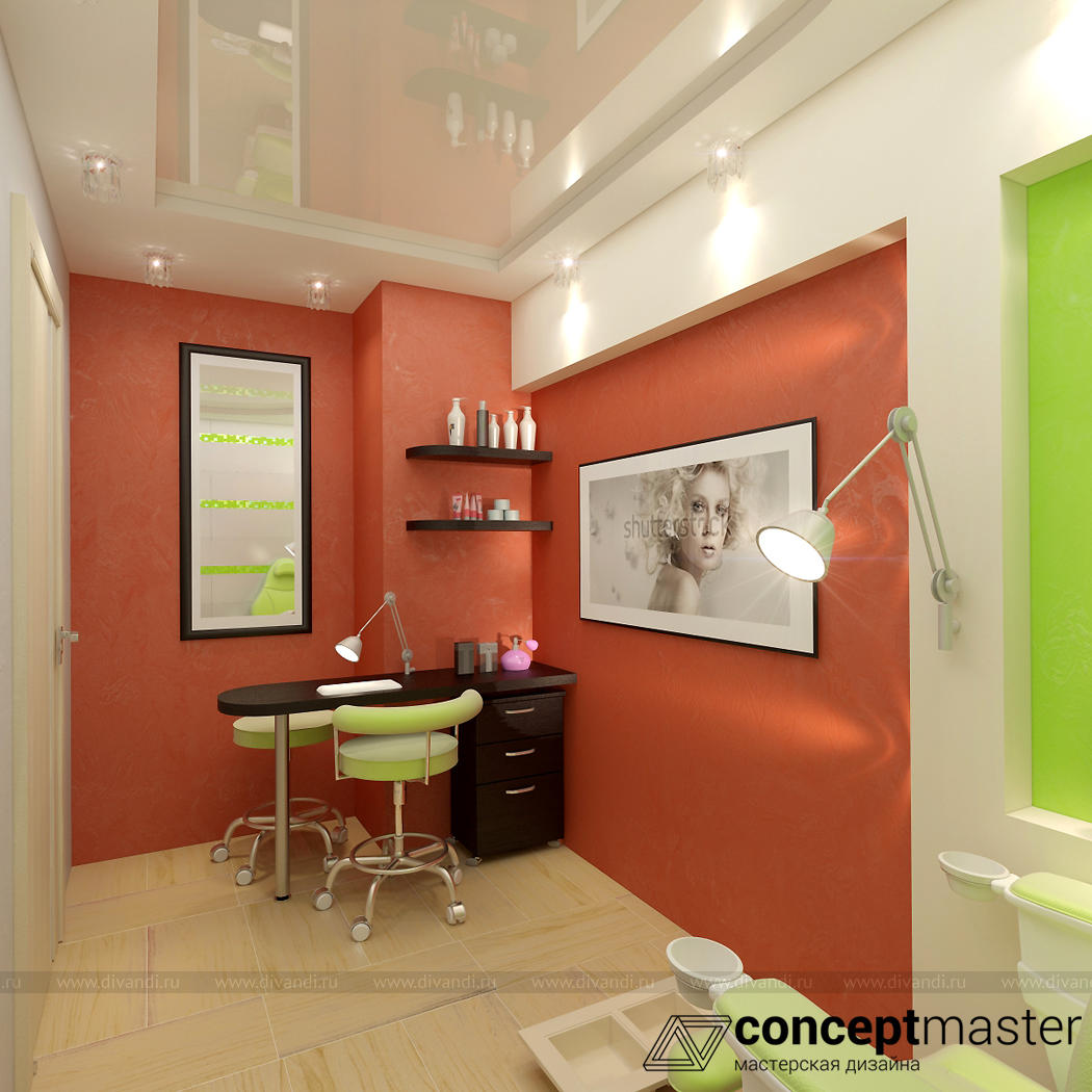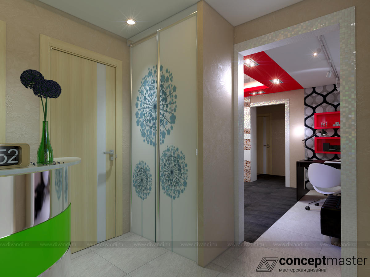 Главной задачей перед нашей мастерской дизайна было создать современный и функциональный интерьер салона красоты, особую, располагающую атмосферу, заставляющую клиентов остаться и оценить качество услуг . Мы попытались оптимизировать работу всех сотрудников с помощью правильного зонирования, использования современного оборудования, комфортных процедурных кабинетов, общих и служебных помещений. Дизайн интерьера салона красоты – это одно из важнейших условий успеха заведения. Люди приходят в салон красоты не только за конкретными процедурами, но в том числе и за эстетическим наслаждением, расслаблением и душевным отдыхом. Создавая яркий и запоминающийся интерьер мы хотели также обеспечить комфортное пребывание и отличные условия для работы.