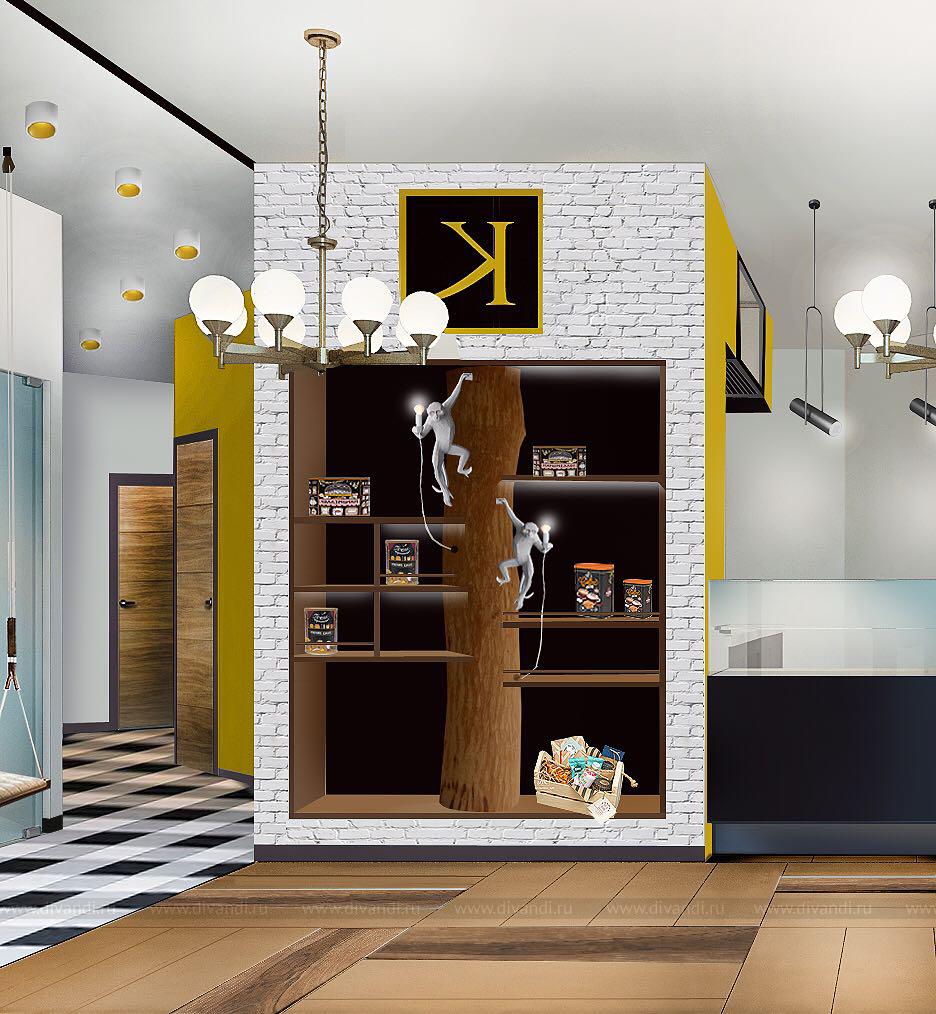 Одна известная кондитерская переезжает в новое помещение. Заказчики обратились к нам с просьбой спланировать многофункциональное пространство, включающее в себя как зону кафе, где можно посидеть и выпить чашку кофе с пирожным, так и зону школы, где проходят обучающие курсы, мастер-классы с известными шеф-поварами. Мы делали концепт, без 3 д графики. За основу было принято светлое пространство. Сочетание белого и золотого с элементами натурального дерева и использованием монохромных фотоизображений.