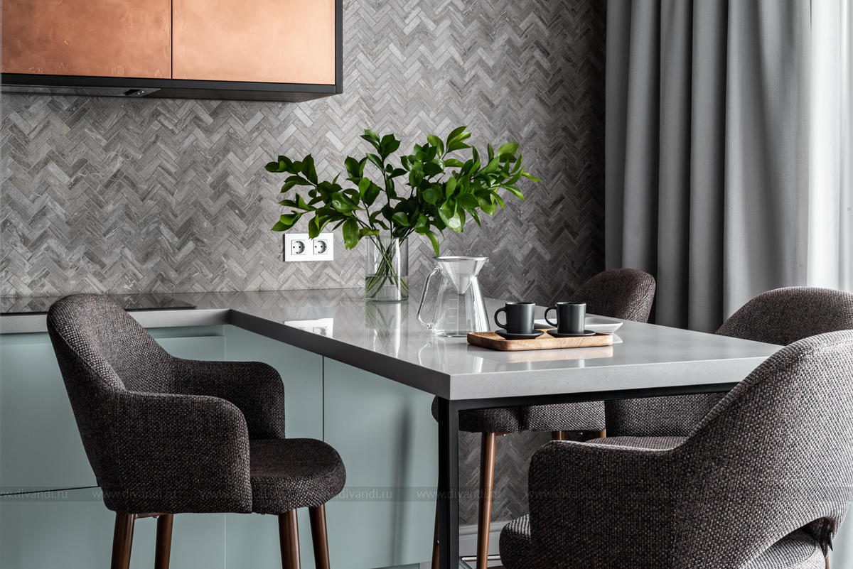 Заказчице нравятся элементы современной классики, а заказчику интерьеры в стиле лофт. Чтобы совместить такие разные видения будущей квартиры, мы пошли на компромисс и очень удачно всё это замиксовали. А еще у супругов очень романтичные и теплые отношения, любят свободное время проводить наедине друг с другом. Отсюда и название "Счастливы вместе", которое отражает атмосферу в семье и сочетание несочетаемых на первый взгляд вещей.