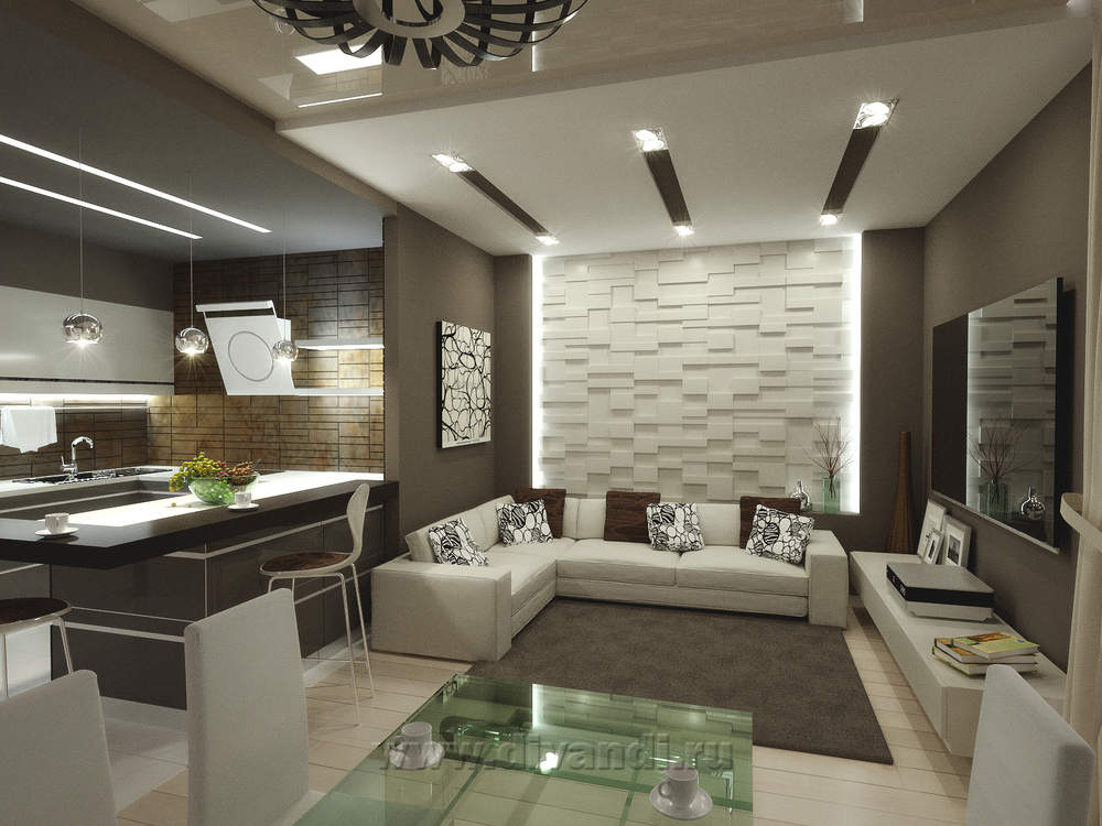 Помимо кухни, спальни и двух детских, родителям требовались прихожая, гардеробная, два санузла и кладовая. По разработке интерьера квартиры семья поставила следующее условие: современно, просторно, удобно и без напыщенного гламура. От такого распространенного приема визуального расширения пространства, как использование стеклянных перегородок и зеркал, также просили воздержаться. Поэтому эстетические удачи этого дизайна, прежде всего, основаны на архитектурных и пластических решениях.