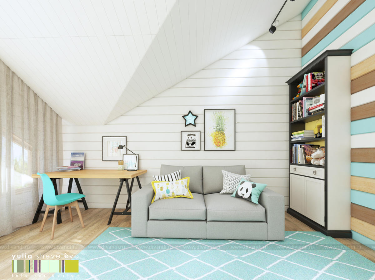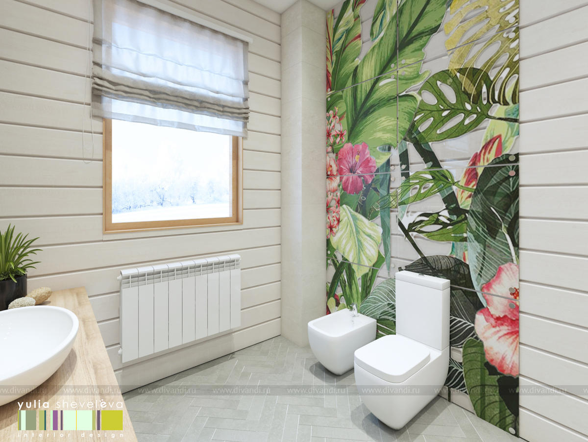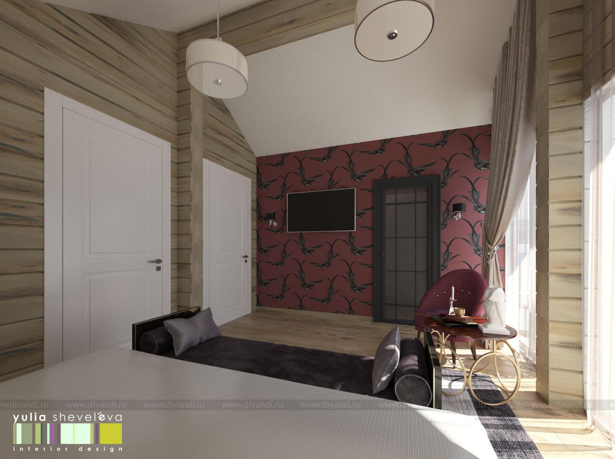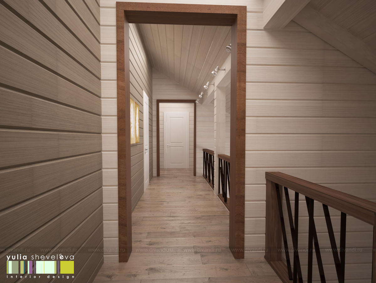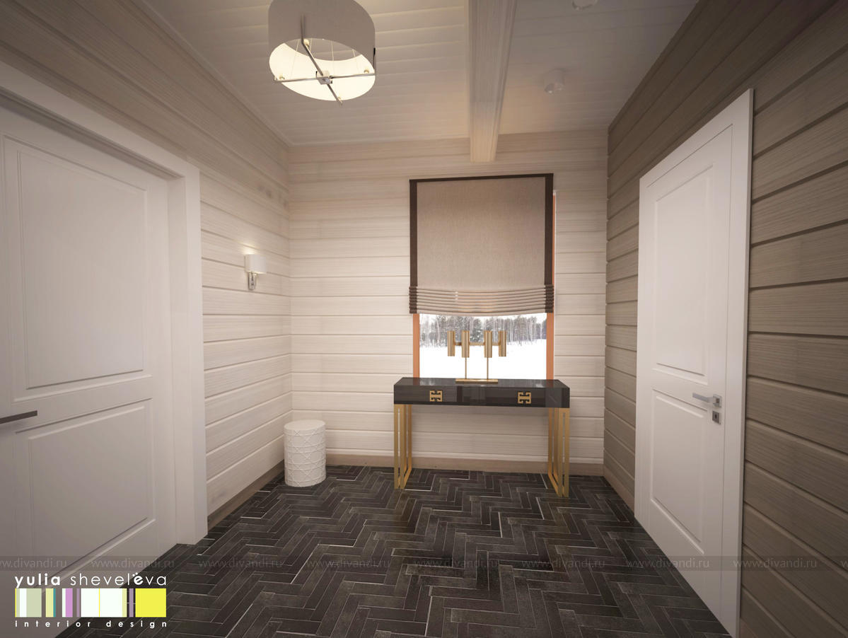 Дом из бруса, расположенный в лесном живописном массиве, недалеко от Екатеринбурга, предназначен для загородного отдыха семьи с двумя маленькими детьми. Дом общей площадью 300 м кв спроектирован в миксе элементов классики и современного стиля. Пространство решено было сделать светлым и просторным, не перегруженным деталями и декором, массивными предметами мебели.Стены окрашены морилкой светлого оттенка, чтобы уйти немного от природного цвета древесины, но при этом сохранить его неповтормую текстуру. Вся концепция интерьера построена по принципу противопоставлений стилей, материалов, форм. В интерьере этого дома классическая кухня находится в гармонии с современным обеденным столом, строгий и прямой диван - в сочетании с уникальными журнальными столиками в эко стиле, минималистичный камин и зеленый большой комод, спроектированный специально для этого интерьера, стоят очень органично. В доме очень много предметов, созданных специально для этого проекта, они придают особый шарм и неповторимость пространству.