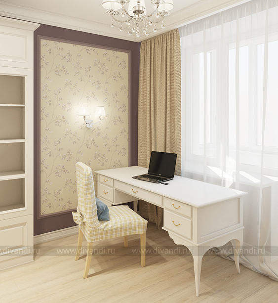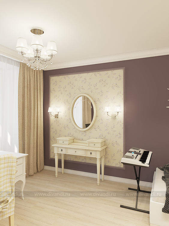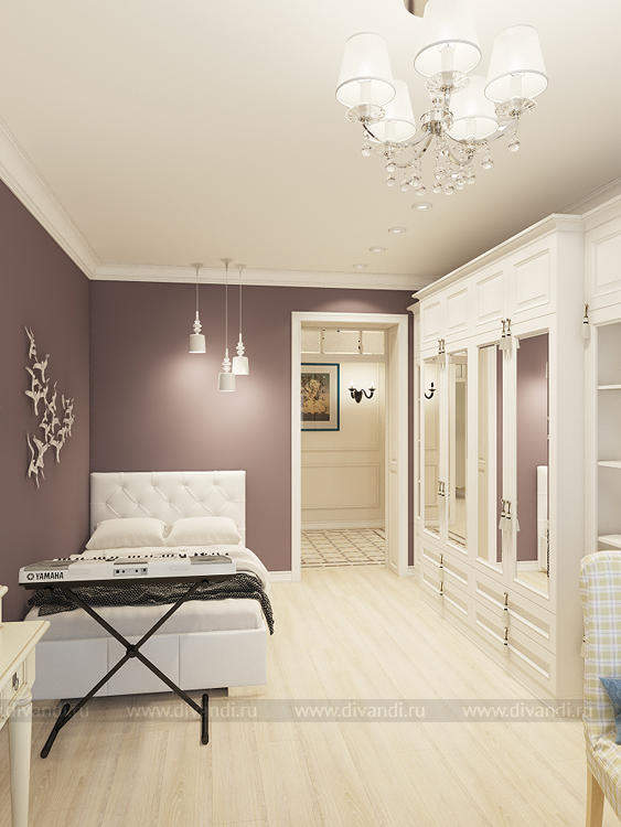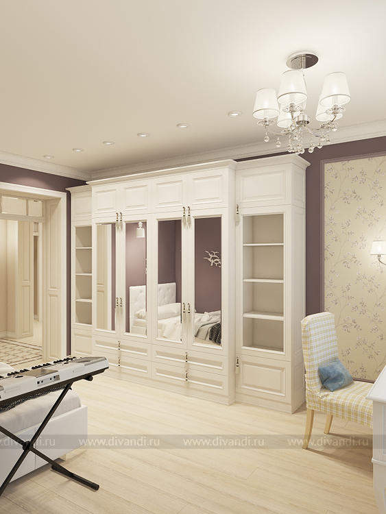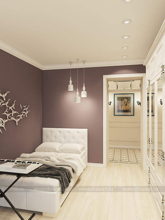 отталкивались мы от кровати она уже была приобретена клиентам и во круг нее разыграли такую нежную историю. Вся мебель будет делаться под заказ по нашим эскизам местными мастерами. Проект согласован без единой поправки!