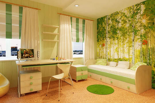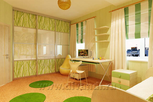 Эта солнечная детская наполнена светом и зеленью! Она будет радовать ее маленького жителя много лет.
