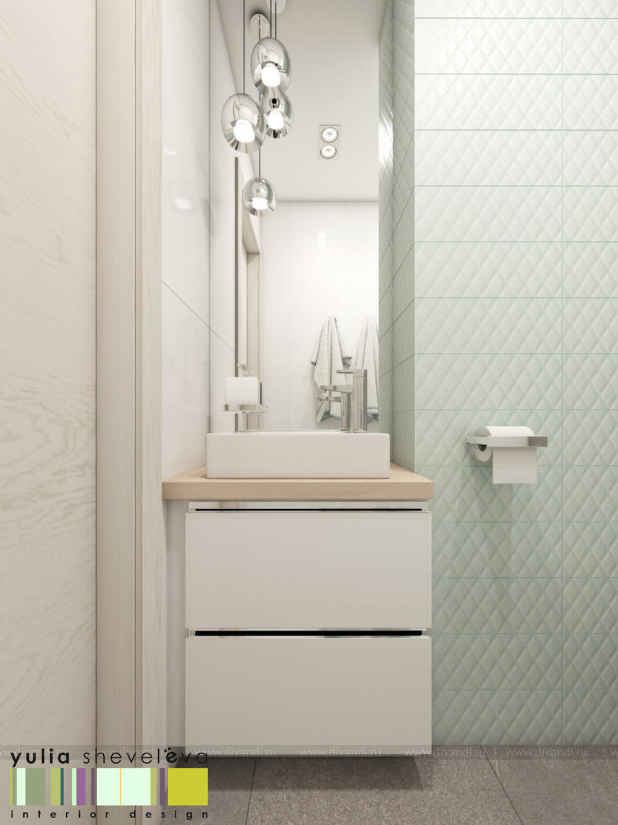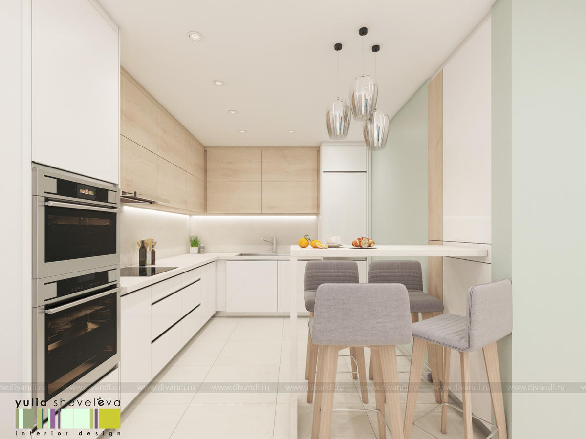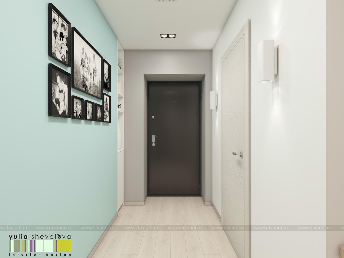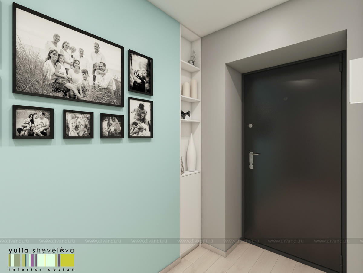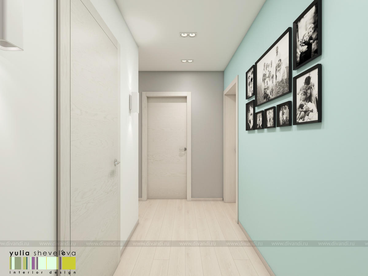 Дизайн-проект двухуровневой квартиры площадью 80 м² в г. Псков. Интерьер выполнен в светлых пастельных тонах, а в качестве акцентов выступают пудровые оттенки голубого и зеленого. Все построено на полутонах и легких акцентах.