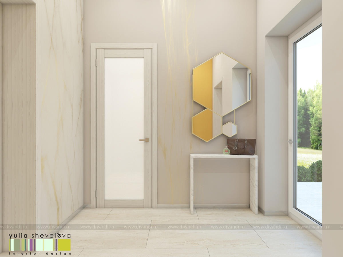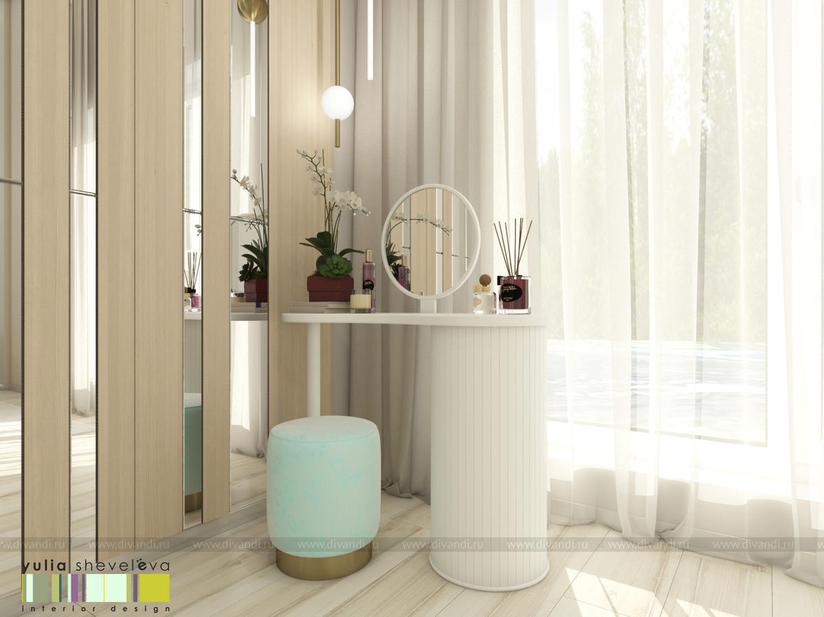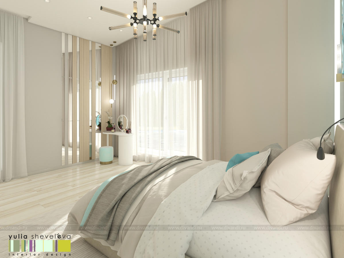 Концепция интерьера складывалась из архитектуры самого дома, который является одним звеном в целом ансамбле домов, окружающих гольф поле. Спокойные цвета и воздушные оттенки, как фон для интерьера, акцентом которого является мебель.