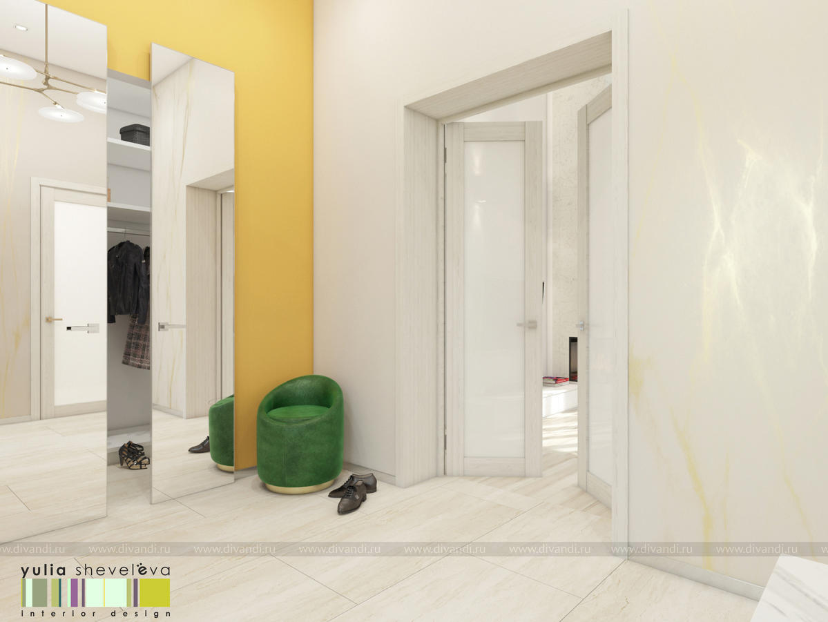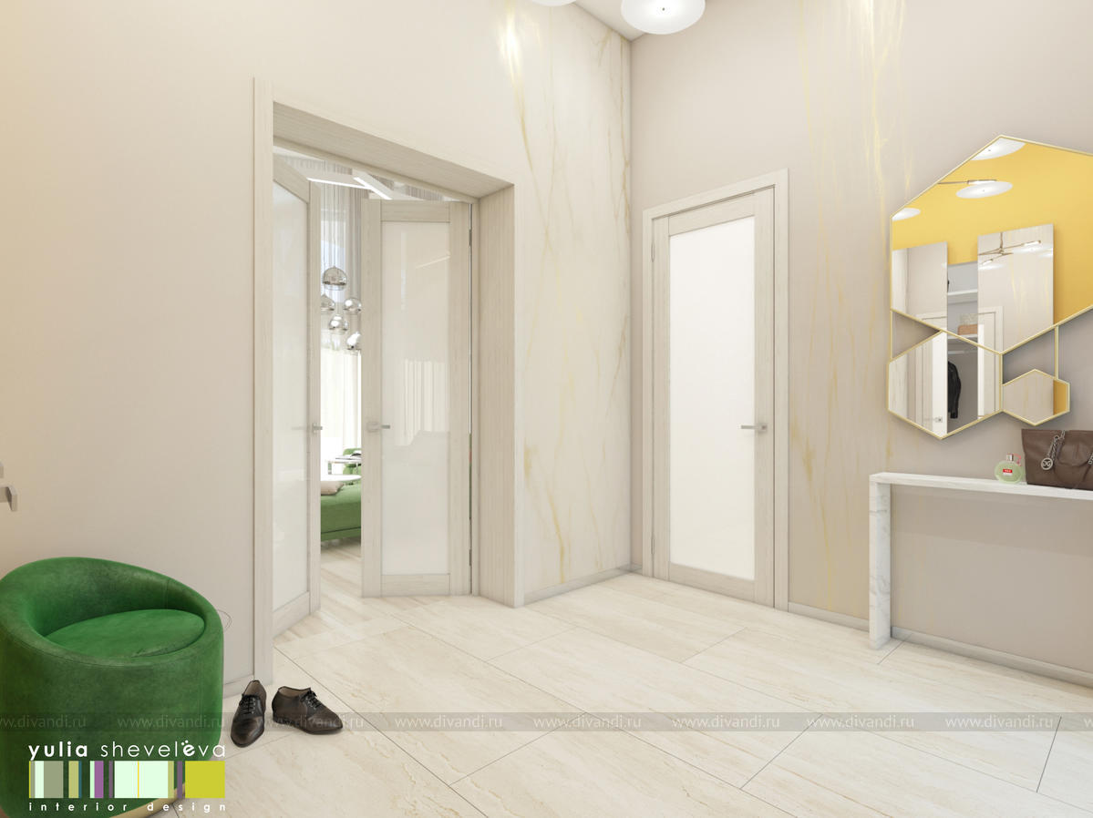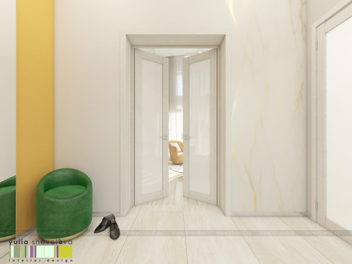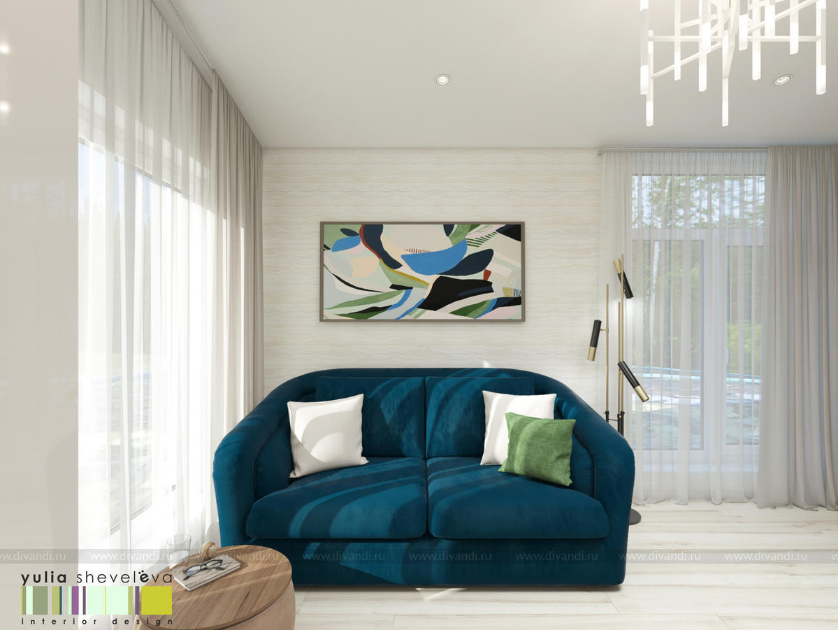 Концепция интерьера складывалась из архитектуры самого дома, который является одним звеном в целом ансамбле домов, окружающих гольф поле. Спокойные цвета и воздушные оттенки, как фон для интерьера, акцентом которого является мебель.