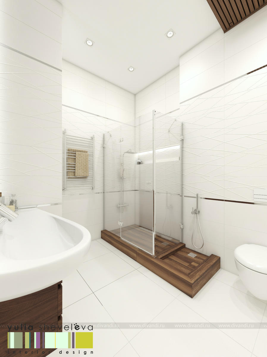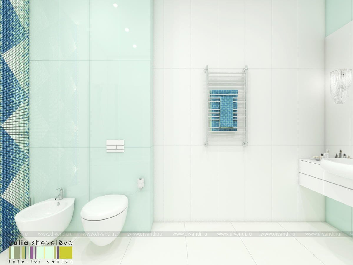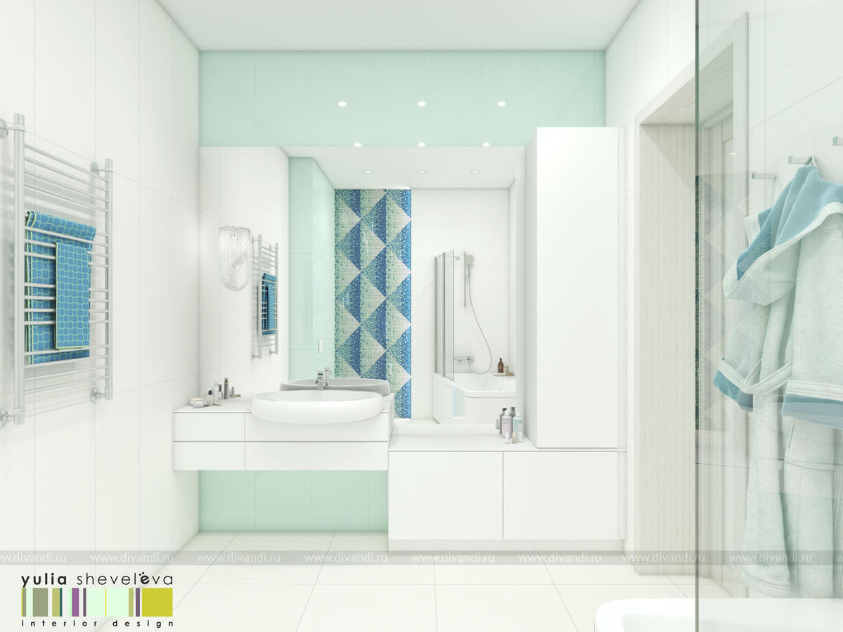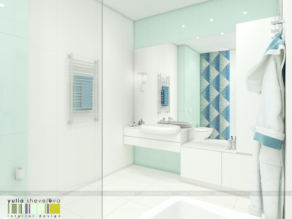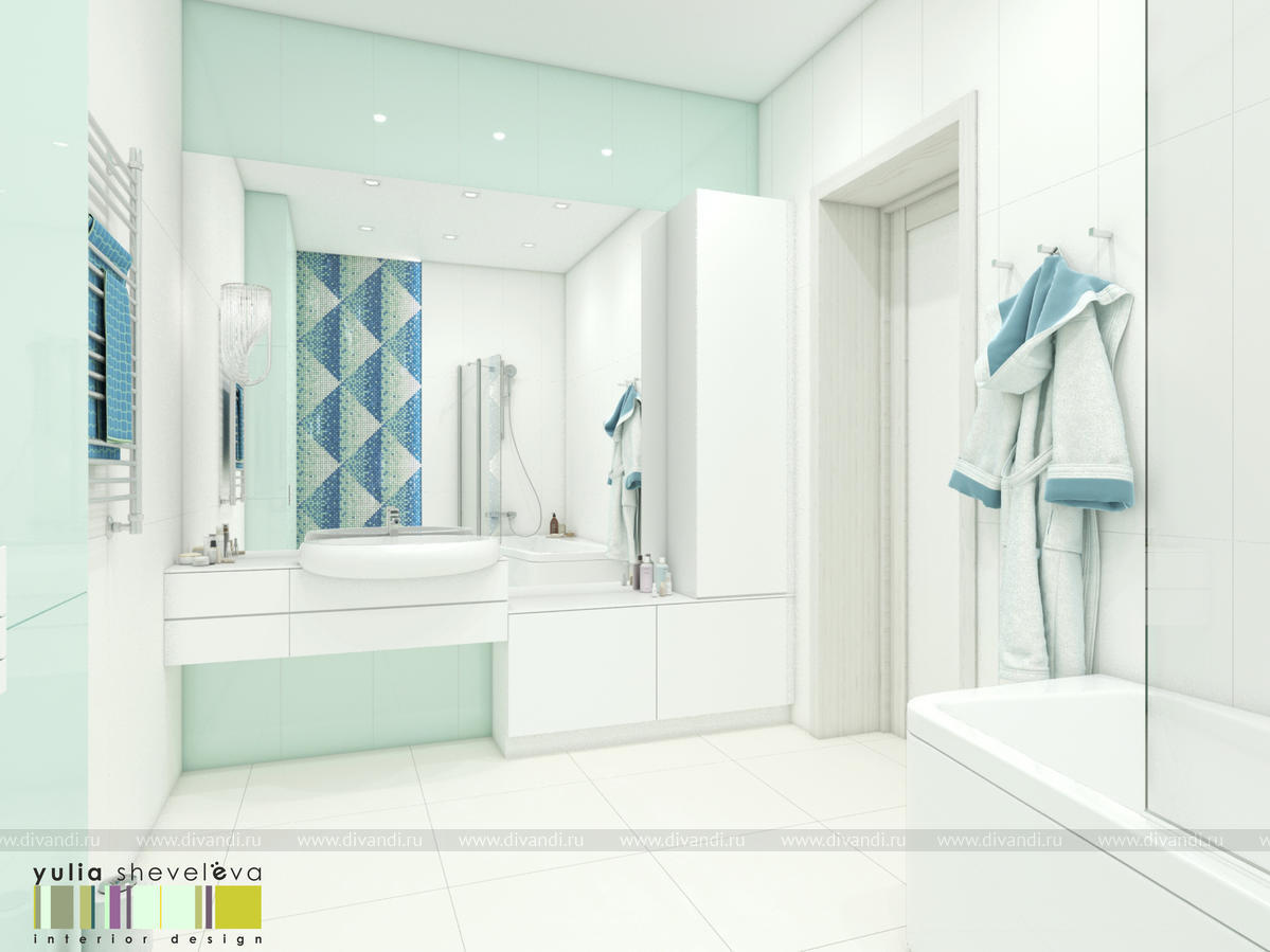 Ванные комнаты решено было сделать в светлой гамме с легкими акцентами.