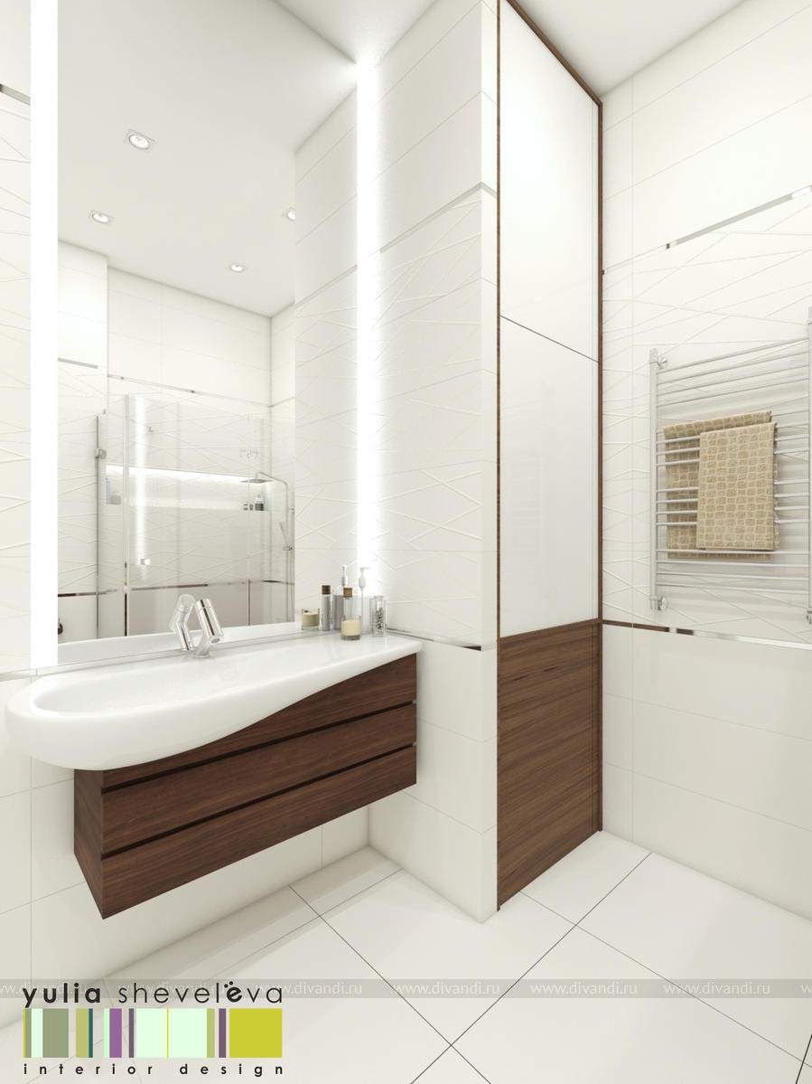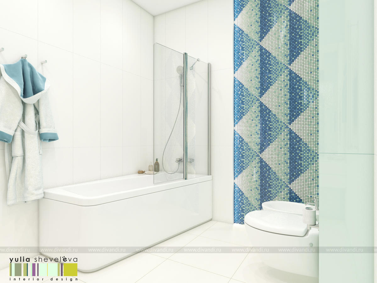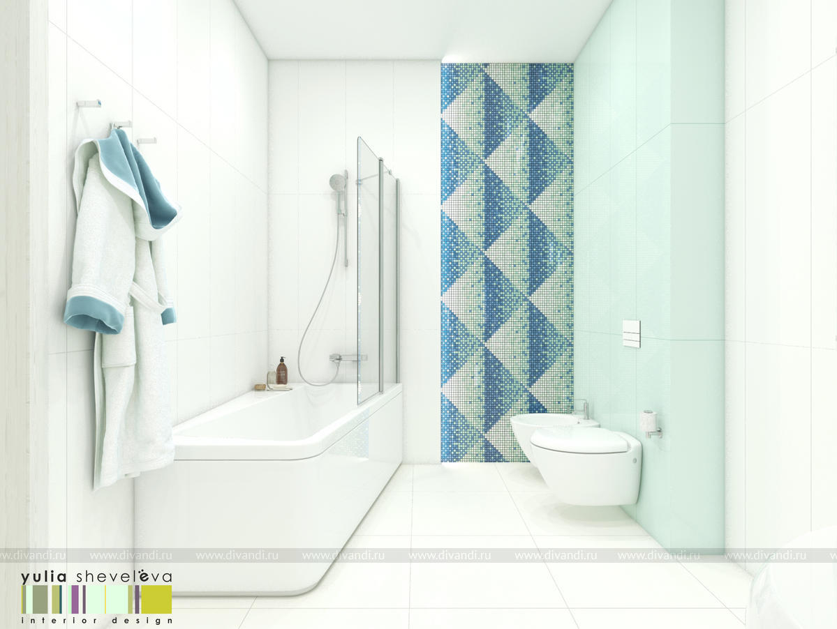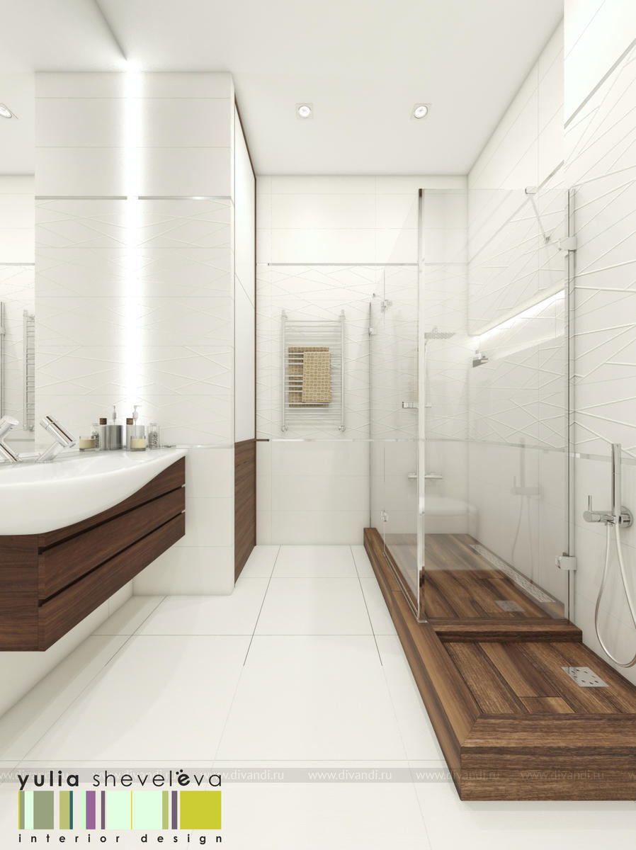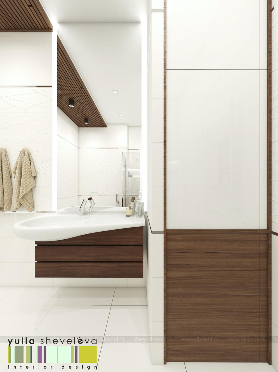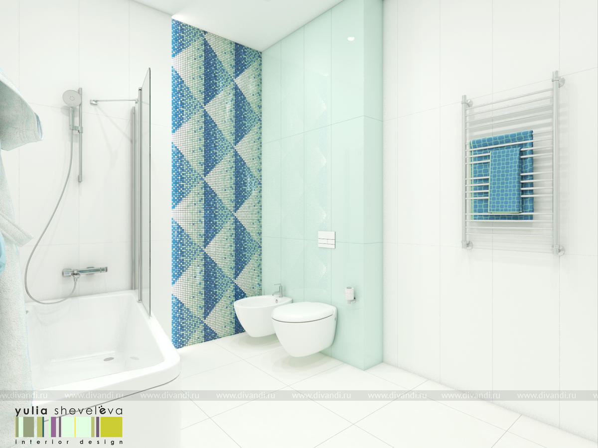 Ванные комнаты решено было сделать в светлой гамме с легкими акцентами.
