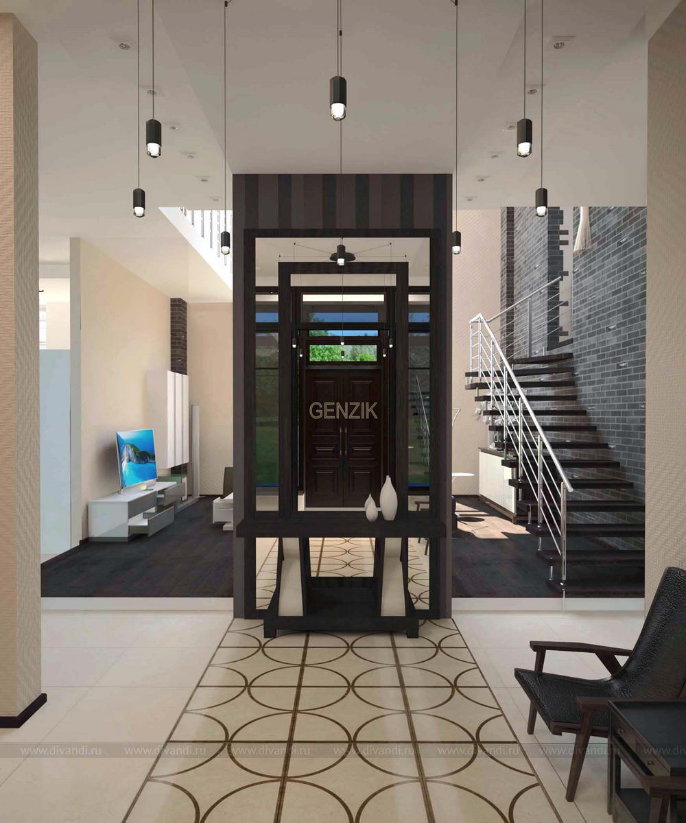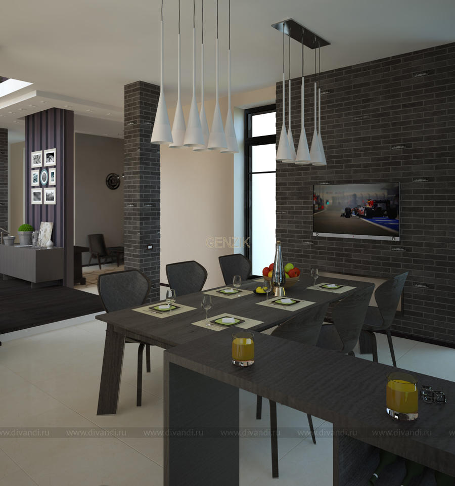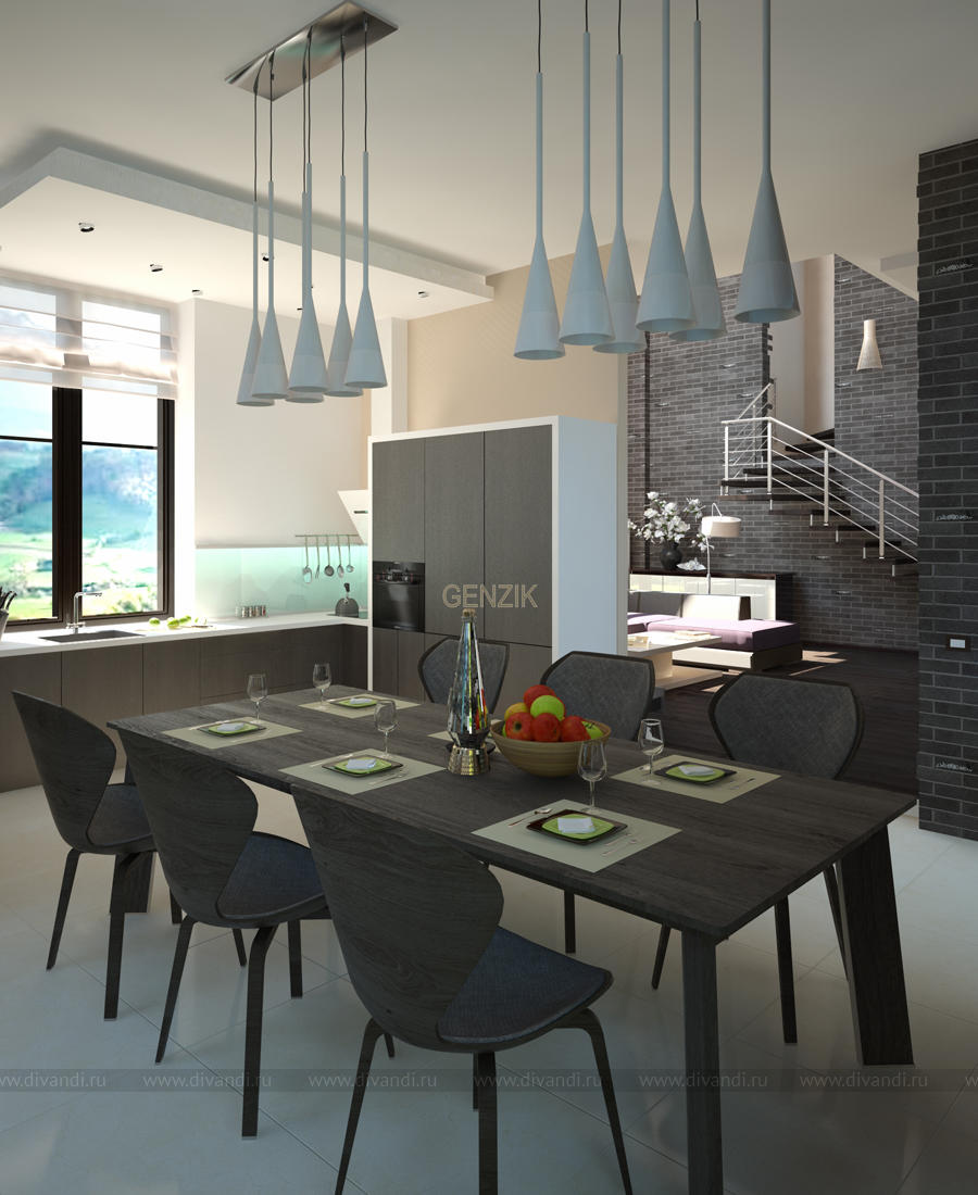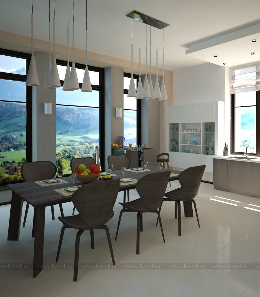 Хозяева большого загородного коттеджа хотели сохранить в нем ощущение пространства - open space и минимизировать декор. Из окон открывались фантастические виды, поэтому от штор в гостиной и столовой решительно отказались.Ещё хотелось, чтобы дом оставался легким в уборке и пыль не собиралась на открытых полках.