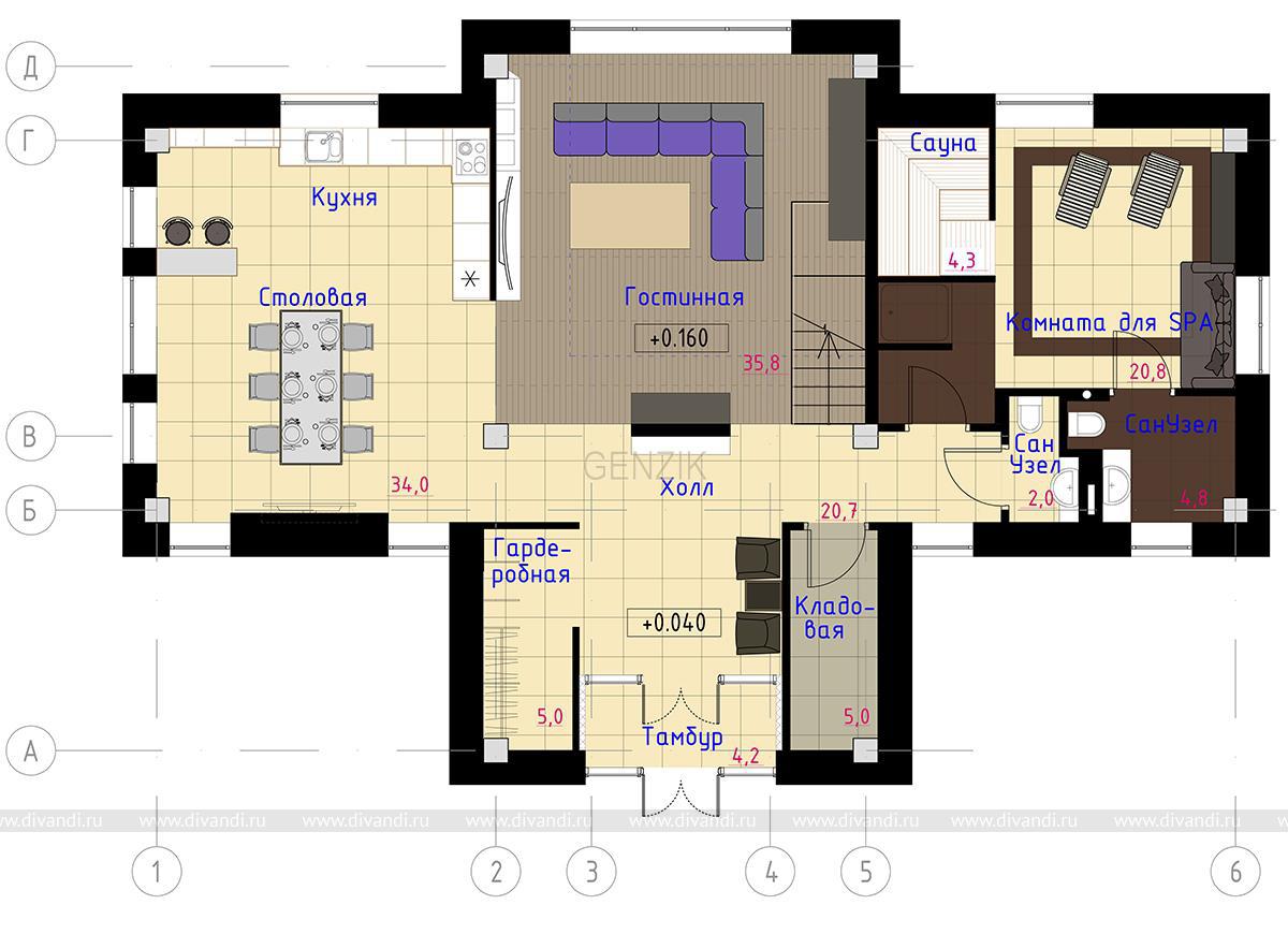Тип проекта: загородный дом, спальня, кухня