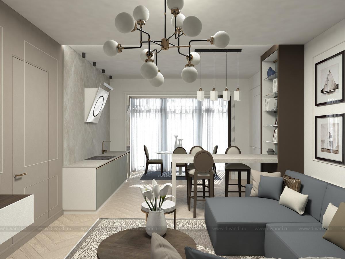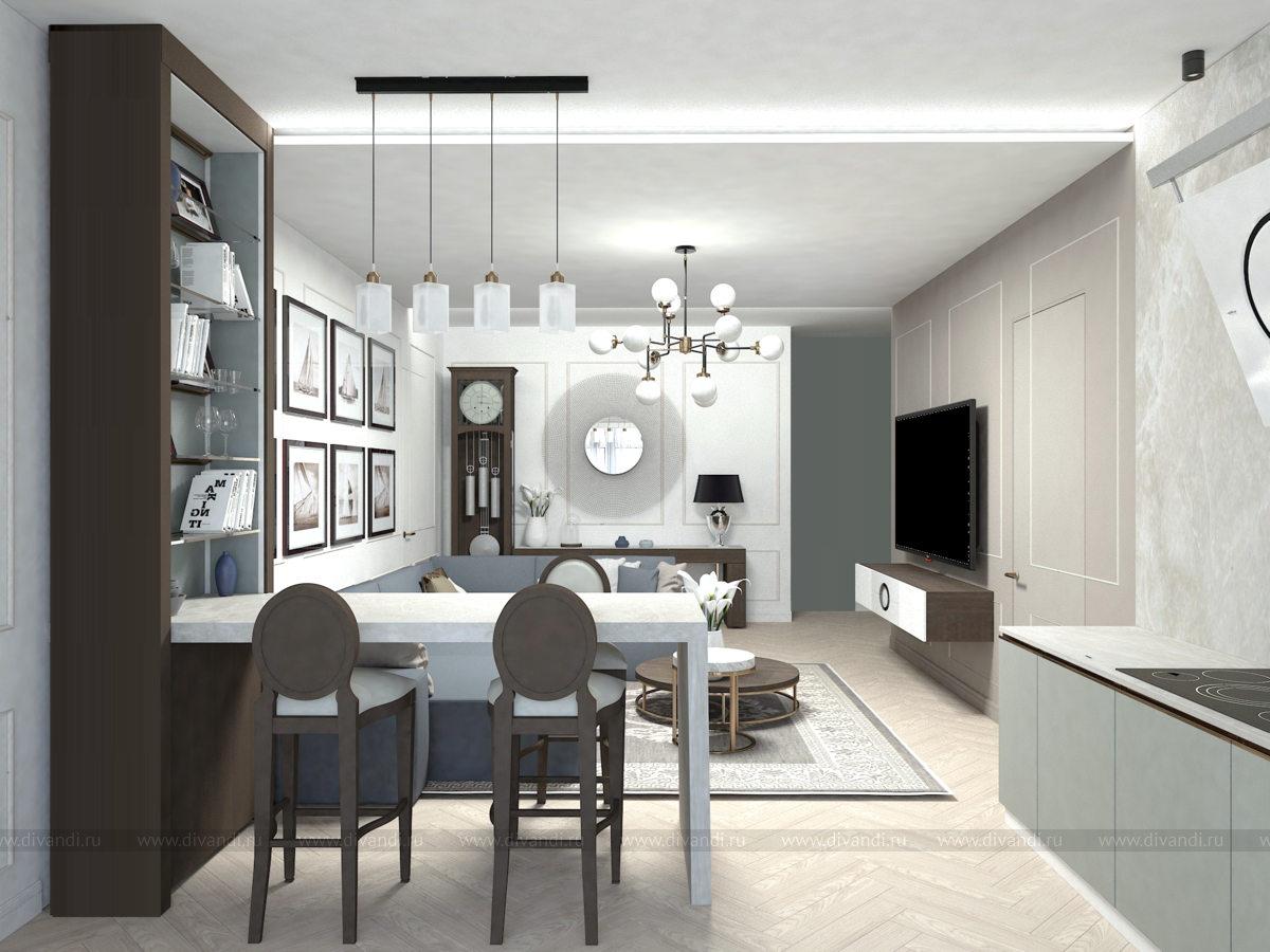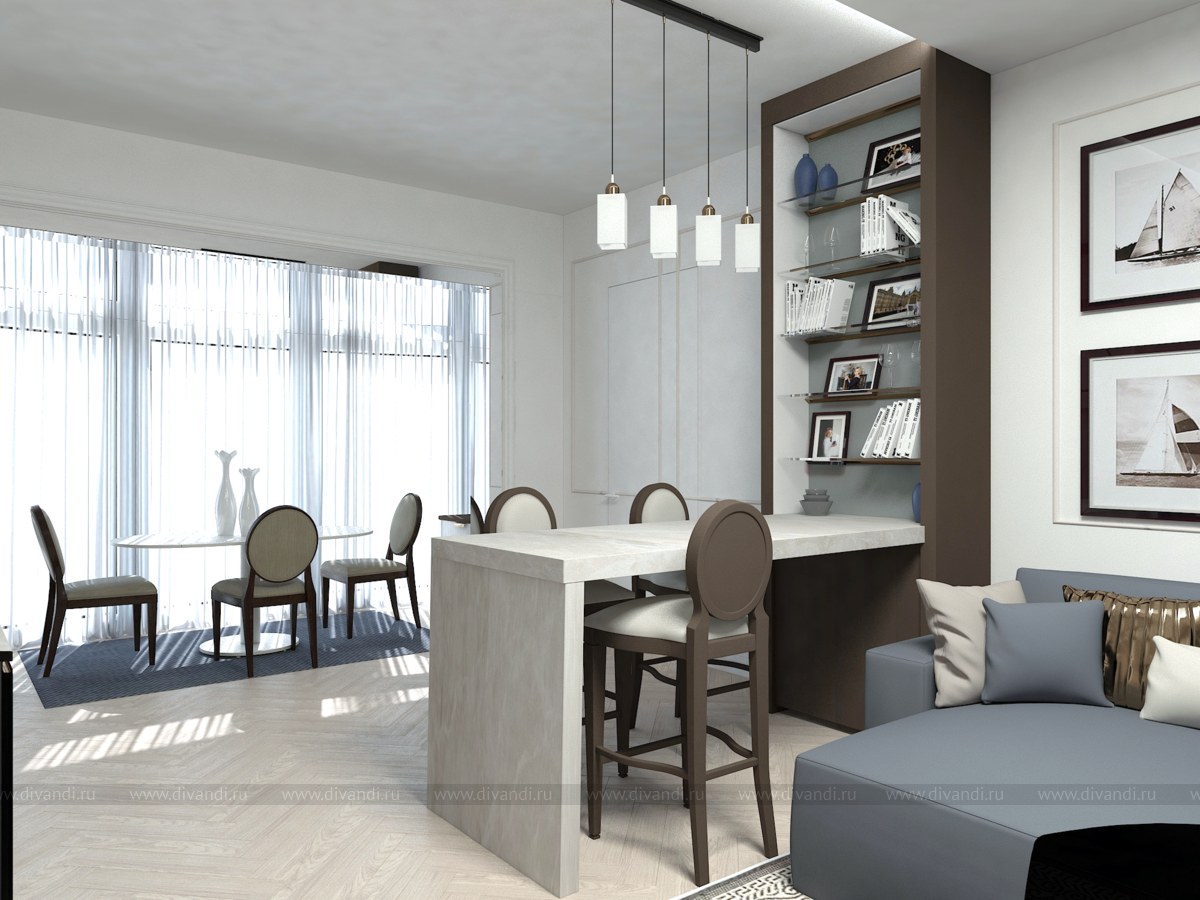 Квартира для семьи, для периодического проживания. На берегу реки Исеть. Облегченный, ненавязчивый, и одновременно статный интерьер.
