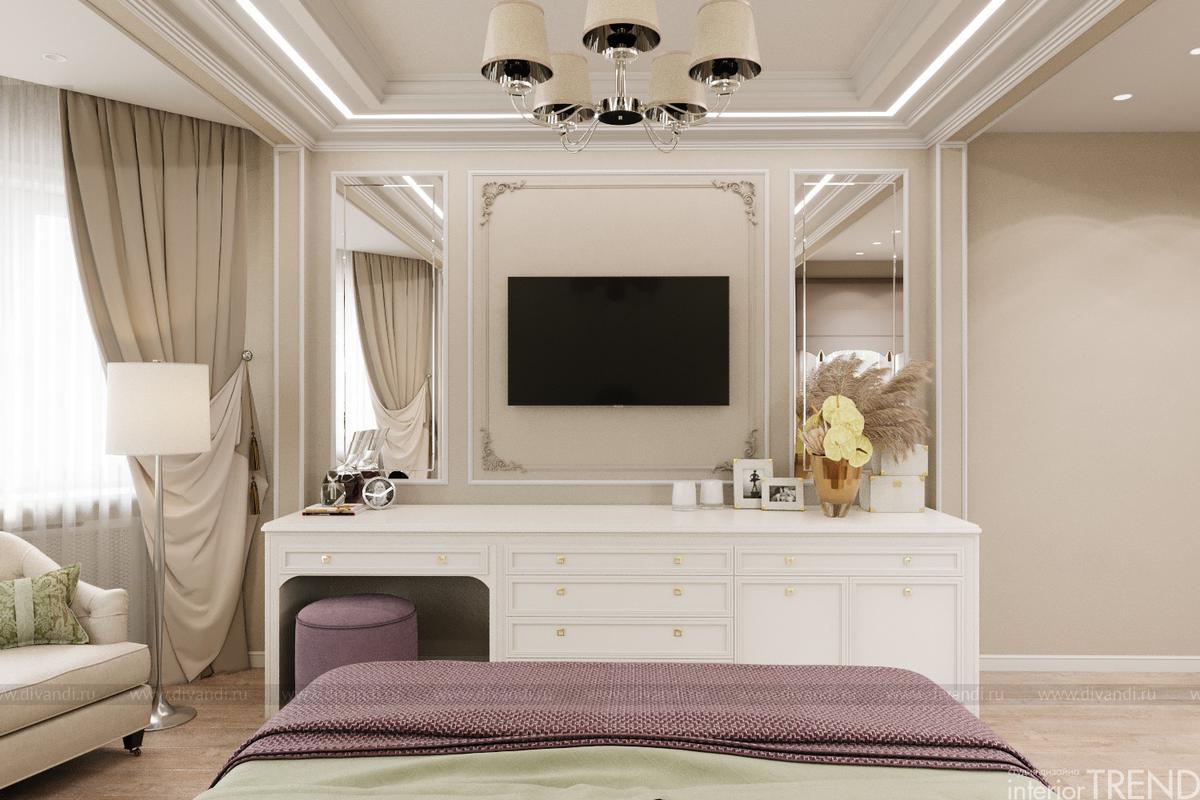 Еще одна наша работа, дизайн интерьера спальной комнаты в проекте интерьера коттеджа в пос.Бобры. | Another of our work is the interior design of a master bedroom in the interior design of a cottage