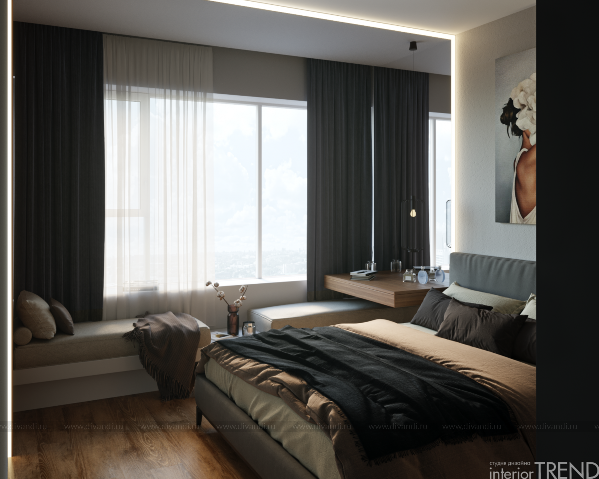 Дизайн проект спальни в ЖК Клевер парк