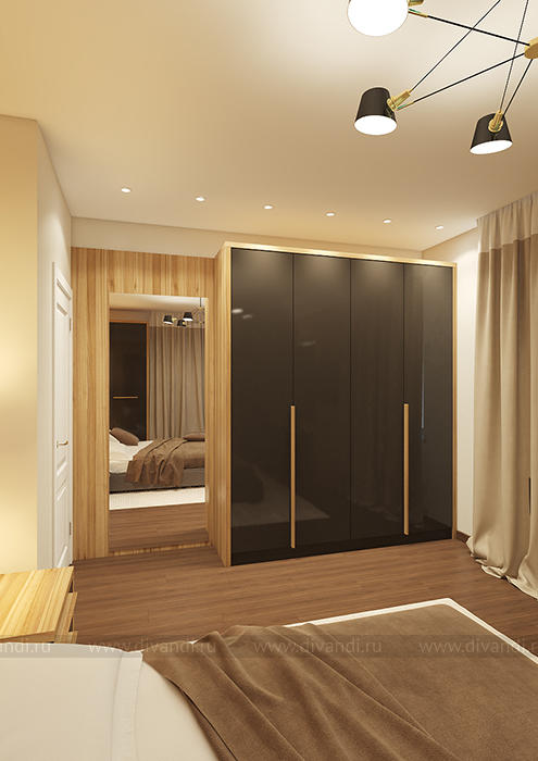 Интерьер спальни для супружеской пары! Приглушённые теплые тона.
