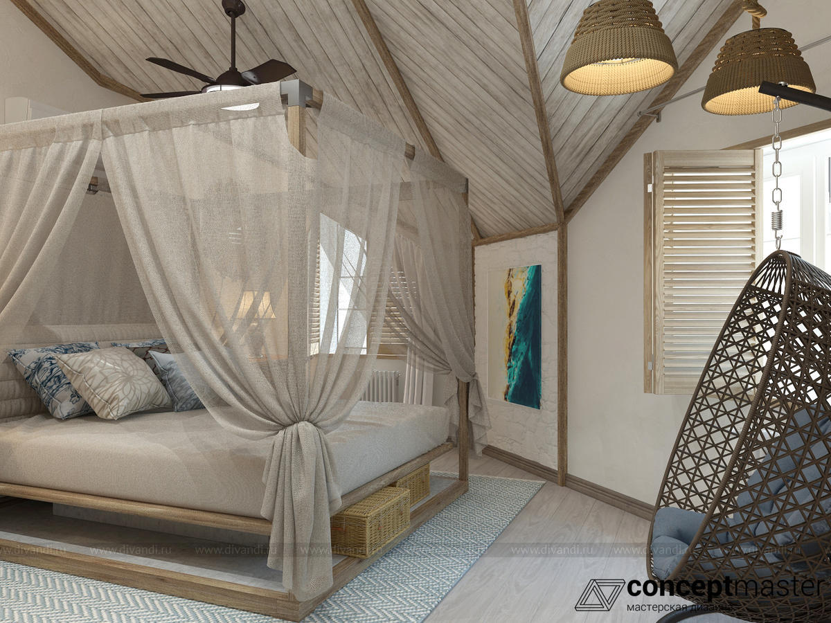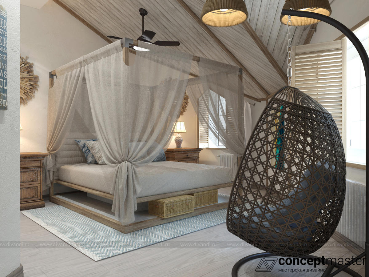 Спальня в стиле бали. Создавая интерьер гостевой спальни в коттедже , мы решили использовать натуральные материалы при отделке помещения. Дерево, камень, льняные ткани, ротанг - все это создаст неповторимый уют и ощущение нахождения на берегу моря