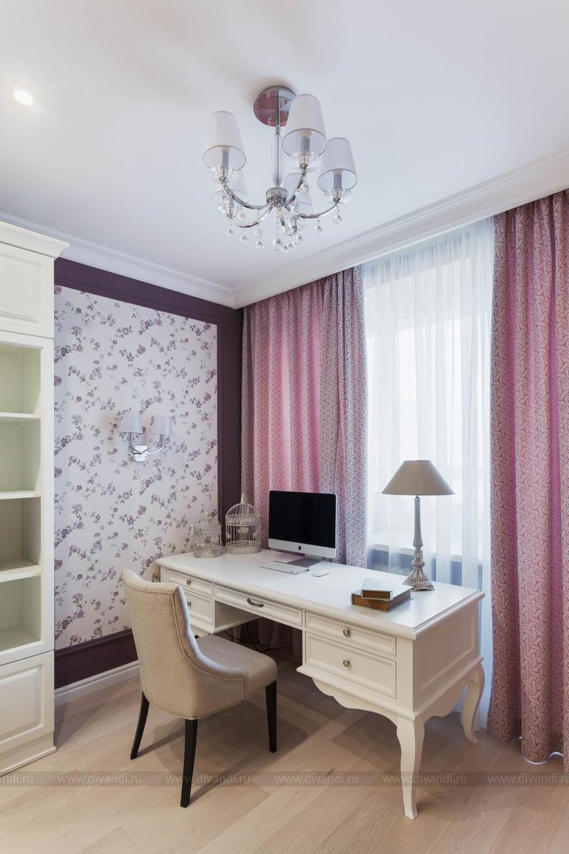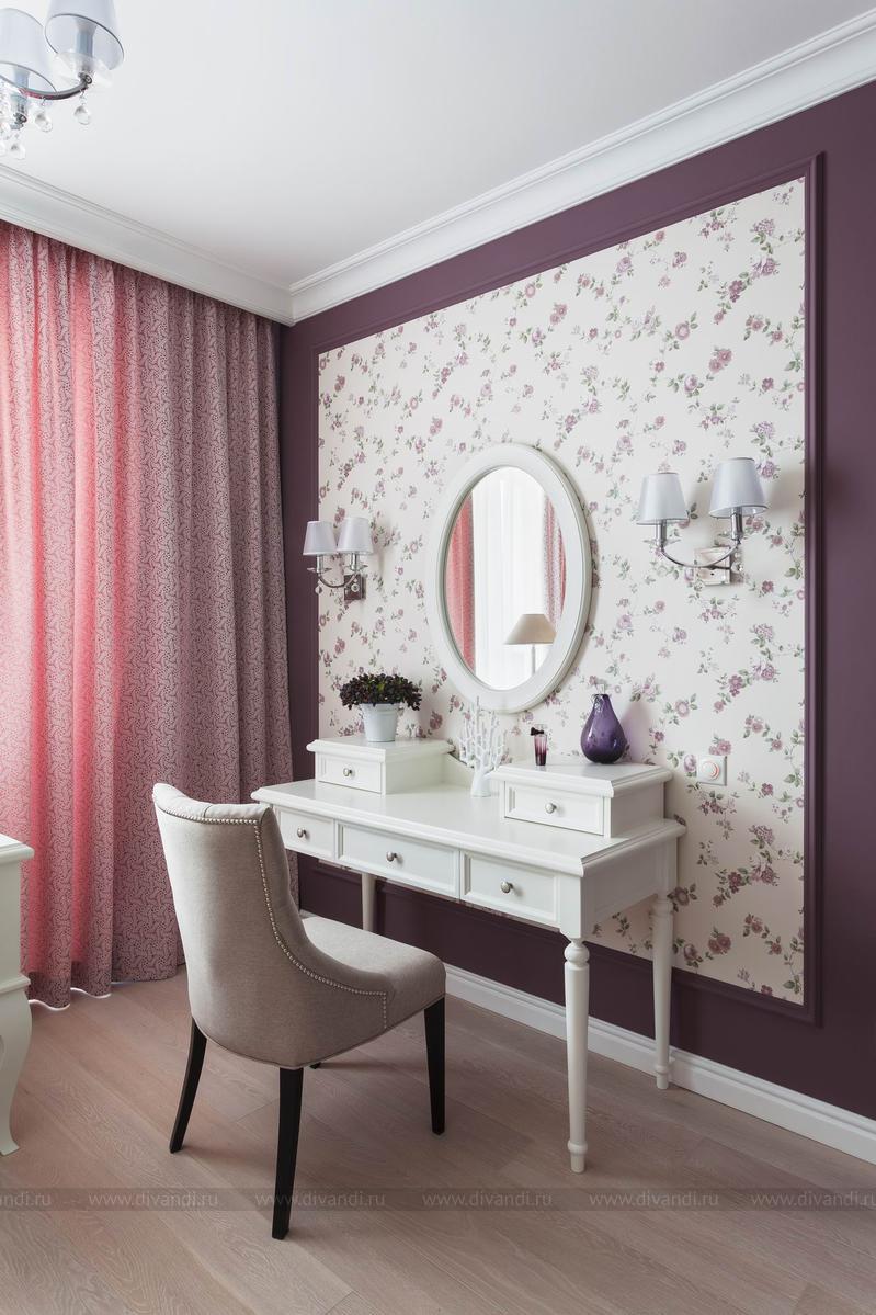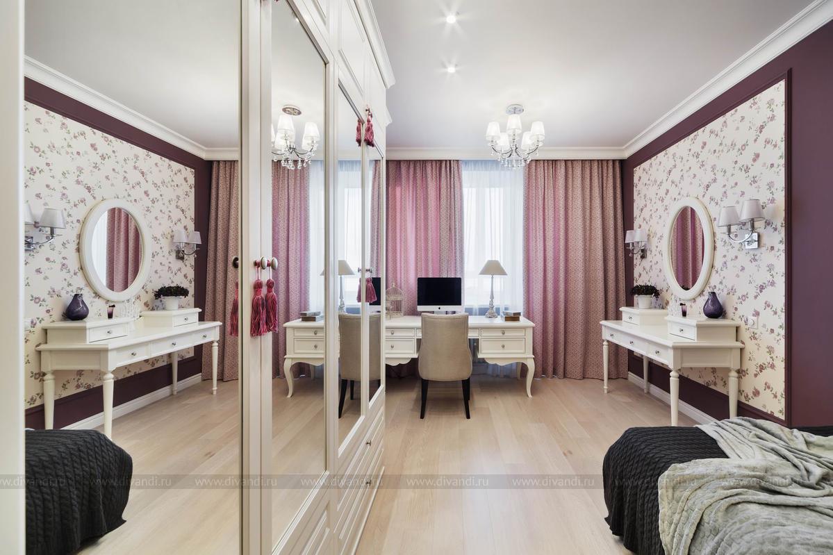 Спальня молодой девушки, старшей дочери наших заказчиков! На полу паркетная доска Стены покраска-краской GLUCK от H&H Обои на вставках-Sanderson- серия PARCHMENT FLOWERS Декор из полиуретана-Orac Décor Кровать осталась от прошлого интерьера Подвесы -REGENBOGEN АЙСФЕЛЬД Панно настенное «ПТИЦЫ В ПОЛЁТЕ» из металла Декор - интерьерный бутик FULL HOUSE.