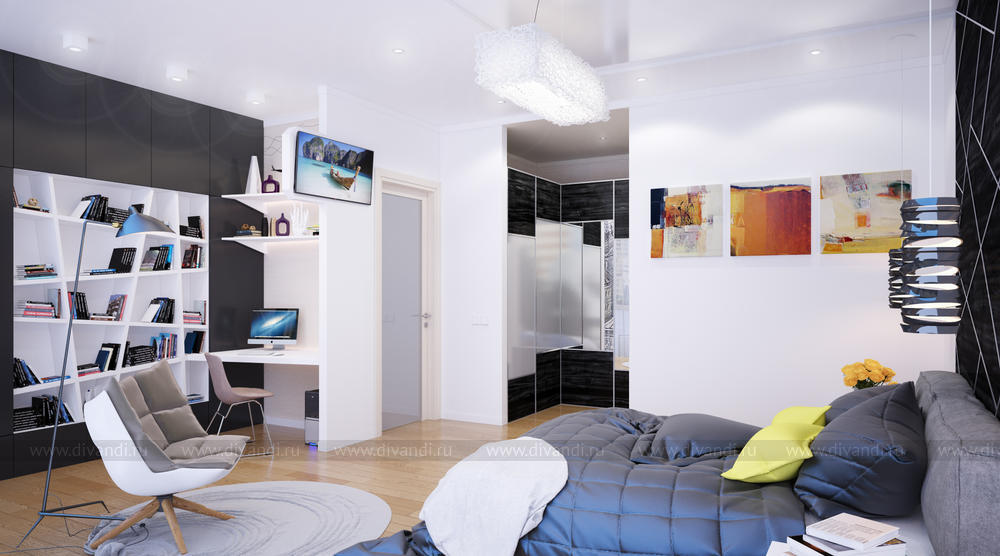 Панорамное остекление обеспечивает визуальное расширение пространства за счет обилия света и воздуха, а контрастное стилевое решение придает интерьеру свежесть и динамку.